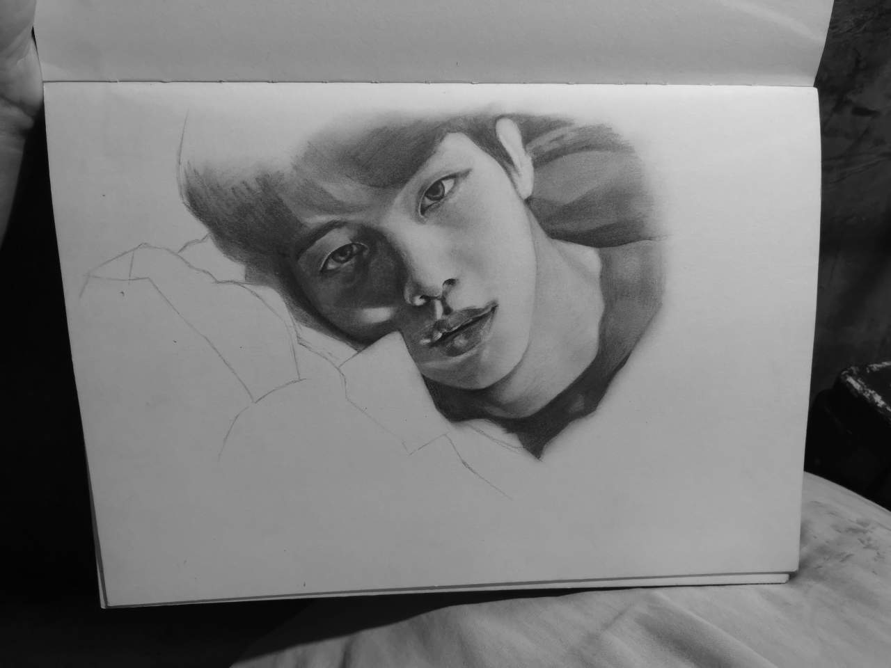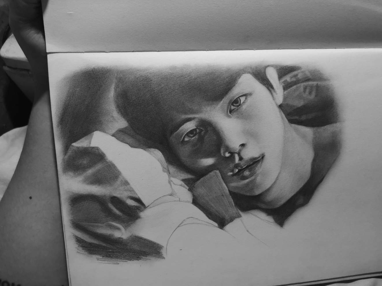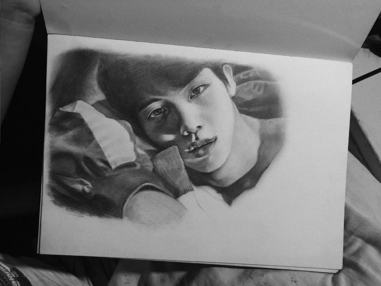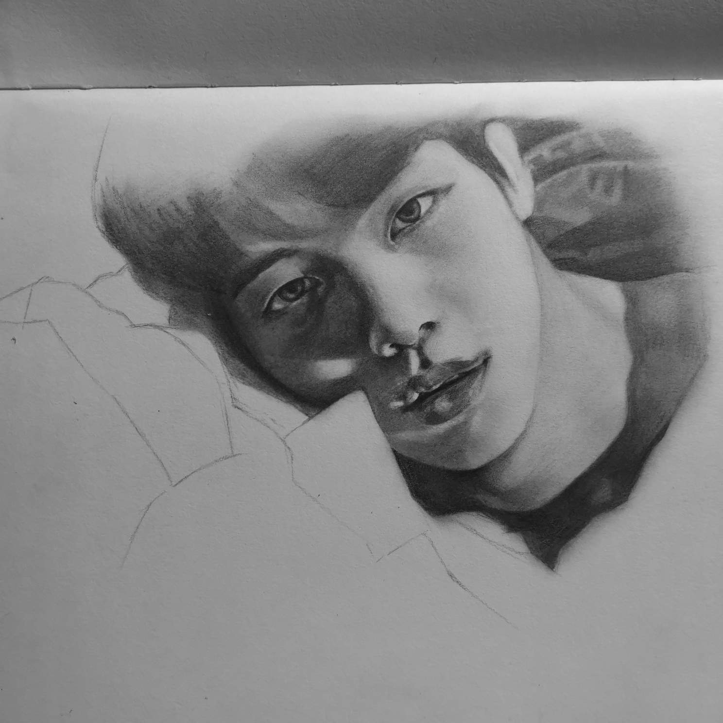 I think you drew Jin wonderfully ! You captured his likeness well, and more than that, I think you captured his personality and his gaze nicely with this portrait :)