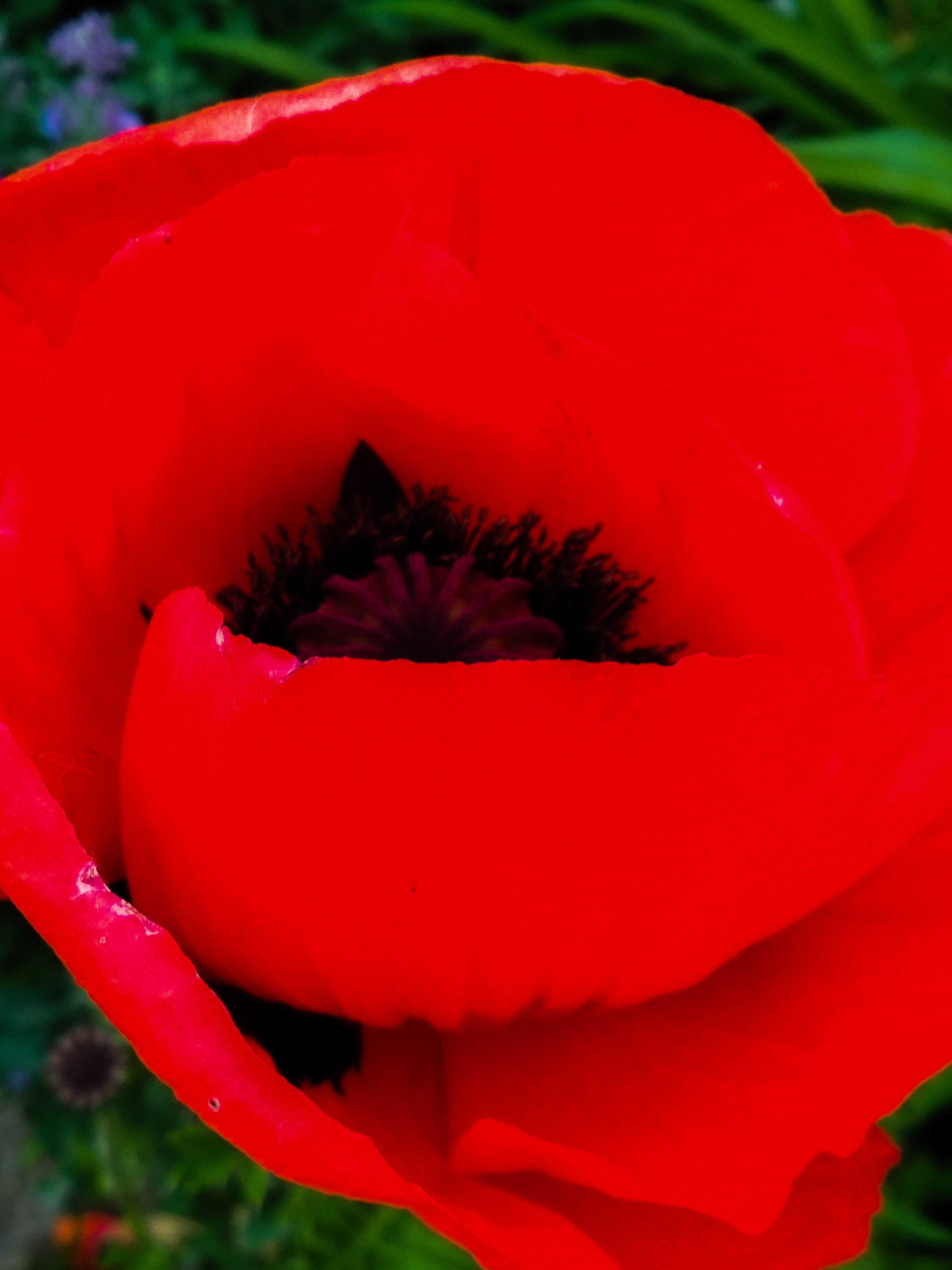Рядом с моим огородом, есть участок, где один молодой человек выращивает цветы. Я вижу, как он поливает свои цветы. И сделала фото его сортовых маков, какие же они крупные и насыщенно красного цвета.