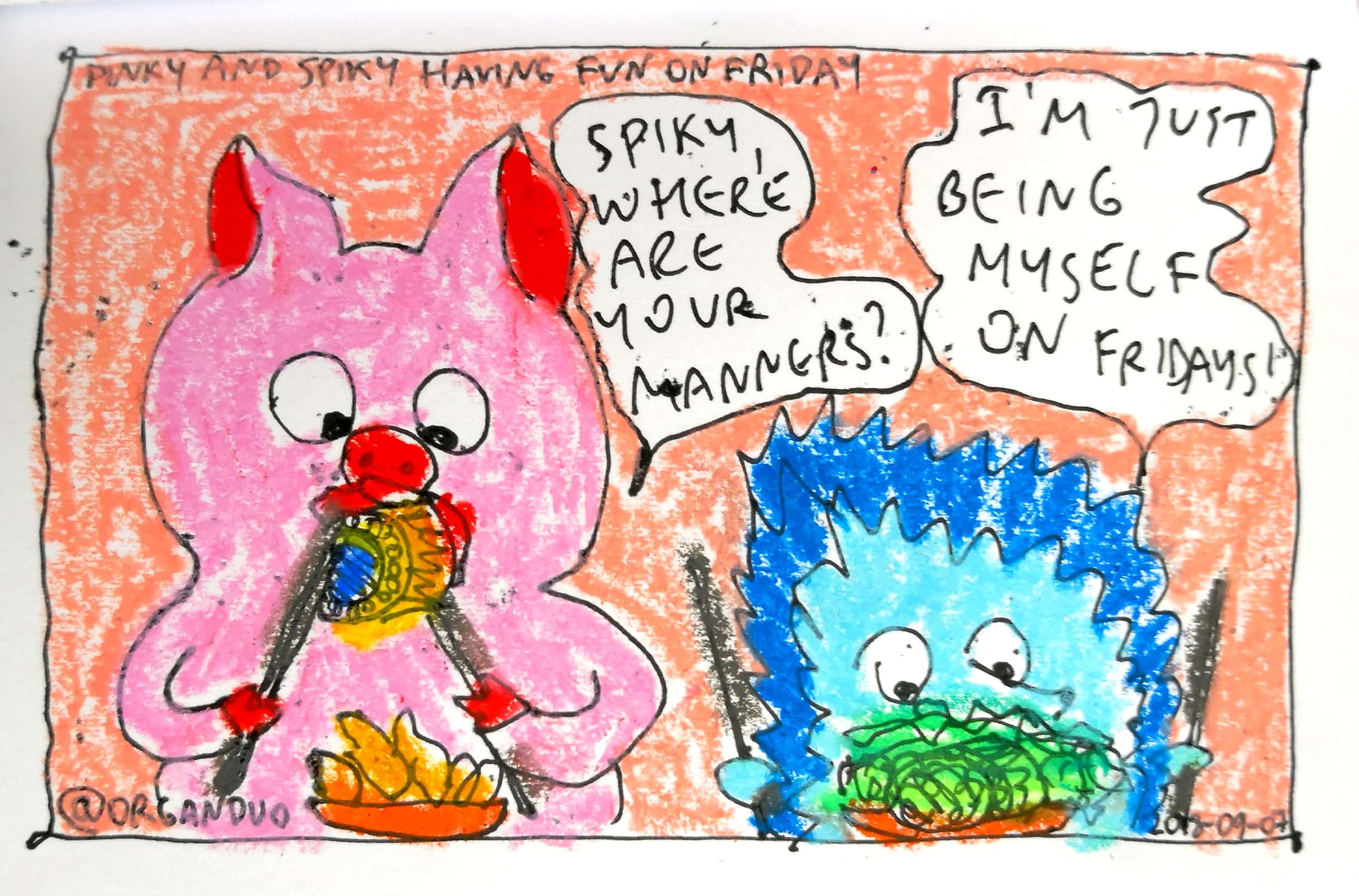 https://steemit.com/artstorm/@organduo/pinky-and-spiky-having-fun-on-friday-artstorm-contest-40-day-5-theme-today-fun-on-friday-non-digital-art