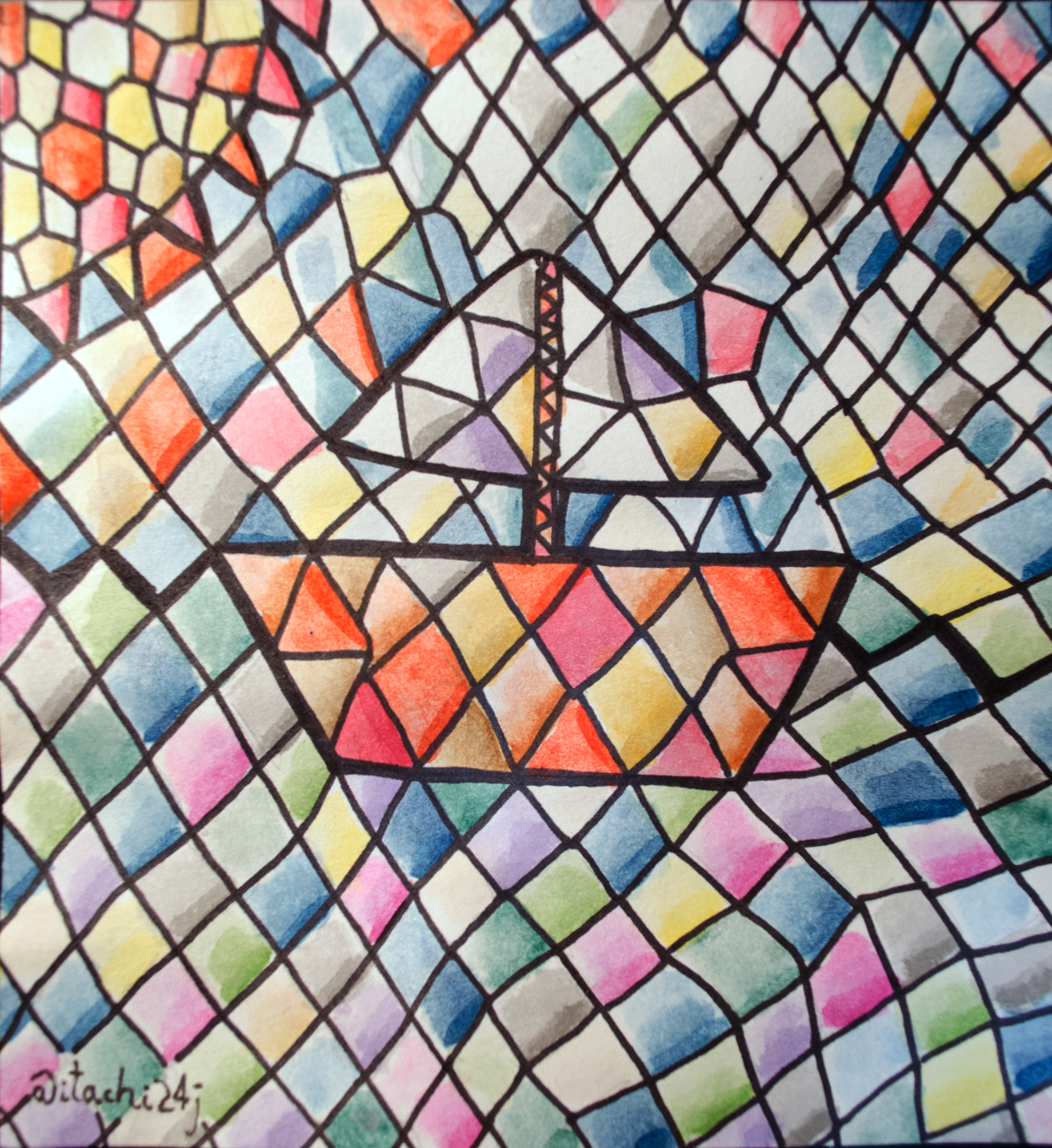 Hola! este dibujo tipo mosaico de un barco es mi entrada en el concurso de @artstorm. Para este dibujo usé acuarelas, marcadores y tinta china, espero les guste!