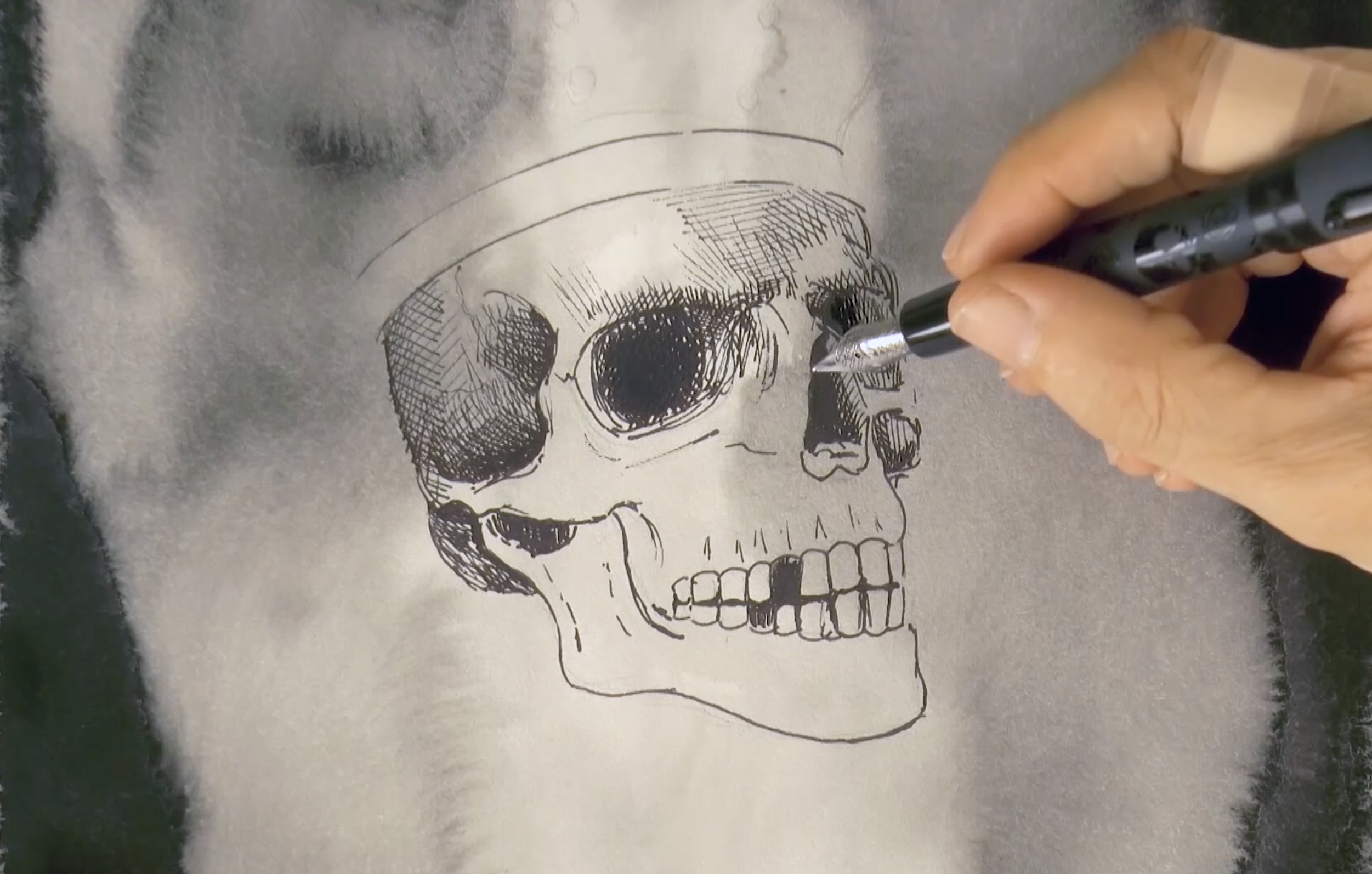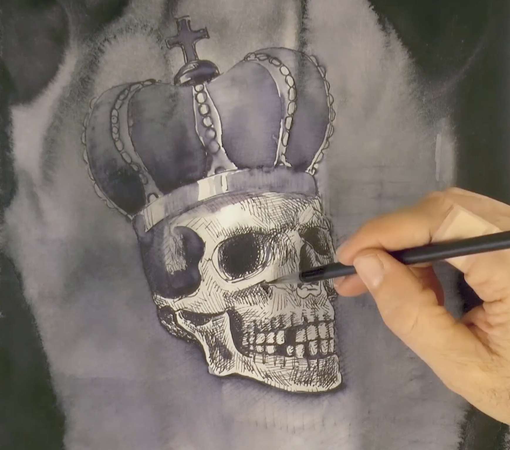 HOW TO DRAW A CROWNED SKULL WITH INK