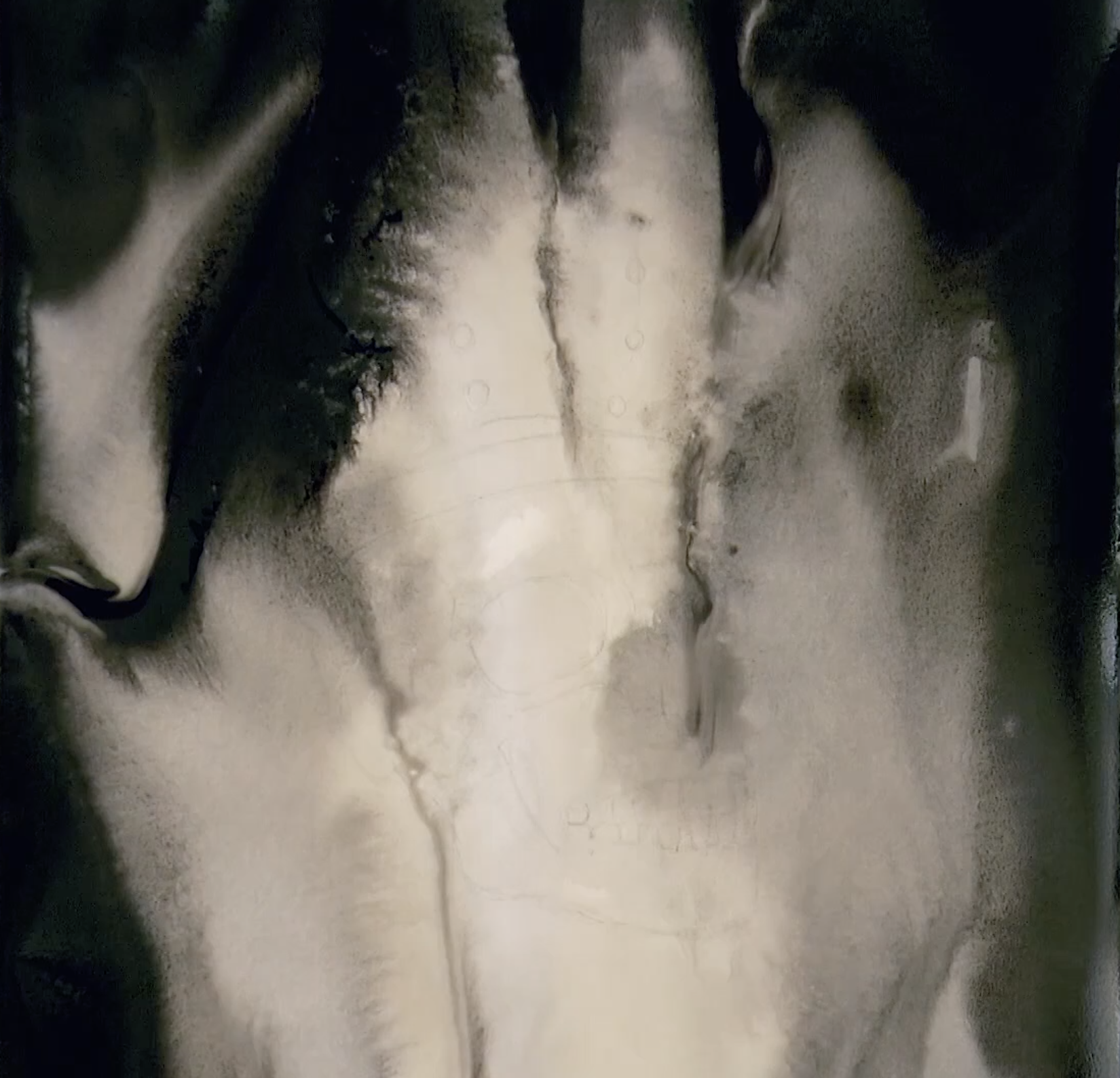 First I sketched it with pencil, got the paper wet (I was using a Winsor & Newton watercolor paper pad), and gave it a layer of ink on the wet paper (it was Montegrappa fountain pen ink, which is water soluble), leaving the area in the middle with almost no ink, while painting the surroundings dark.