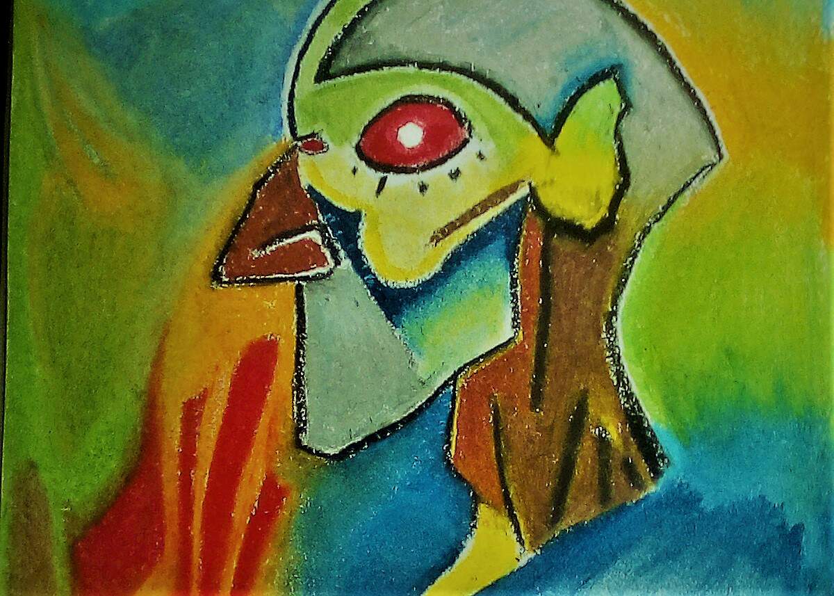 an Abstract work drawn with oil pastel.