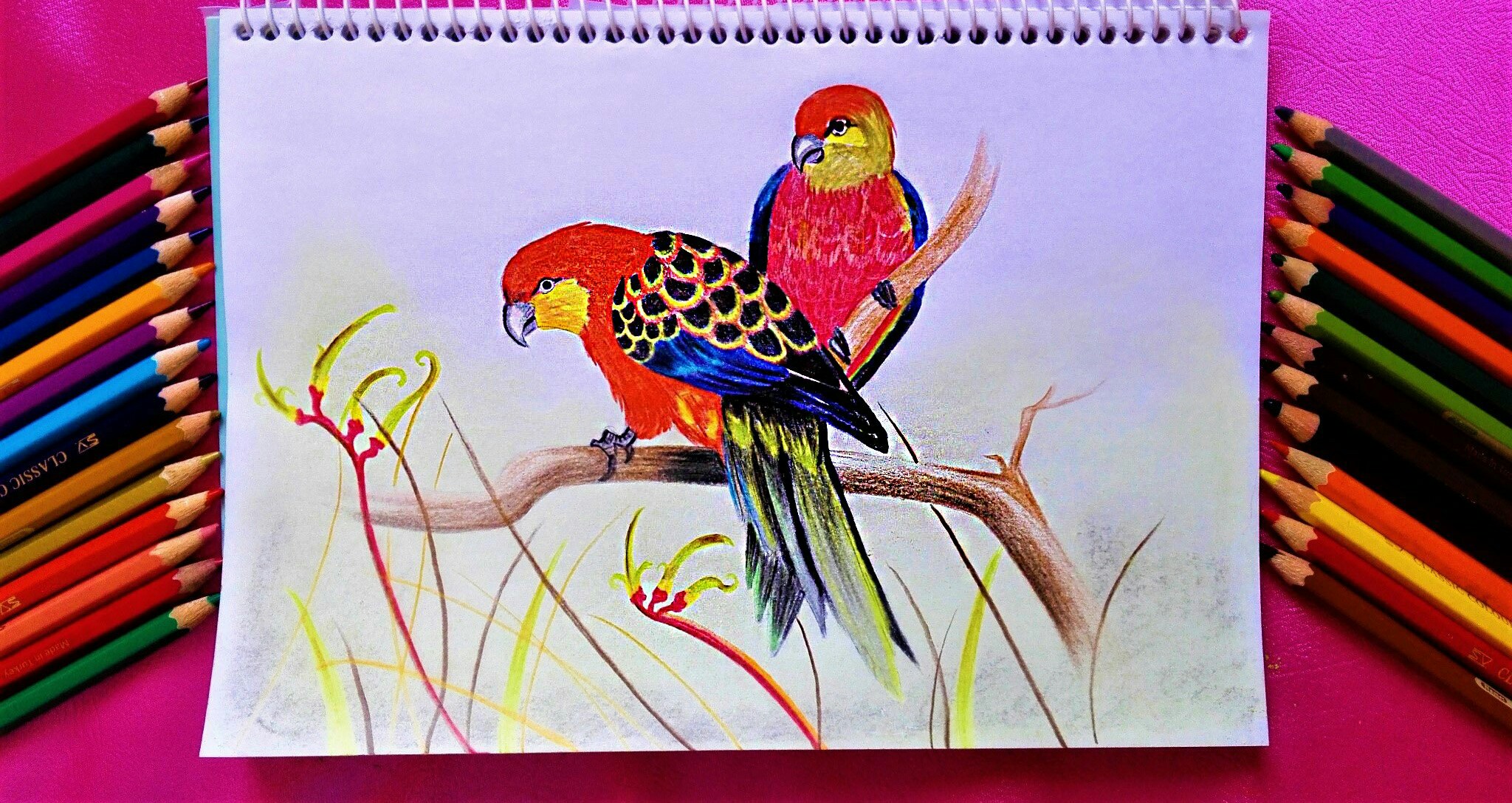 Comment: lovely colour pencil painting of love bird. Keep it up