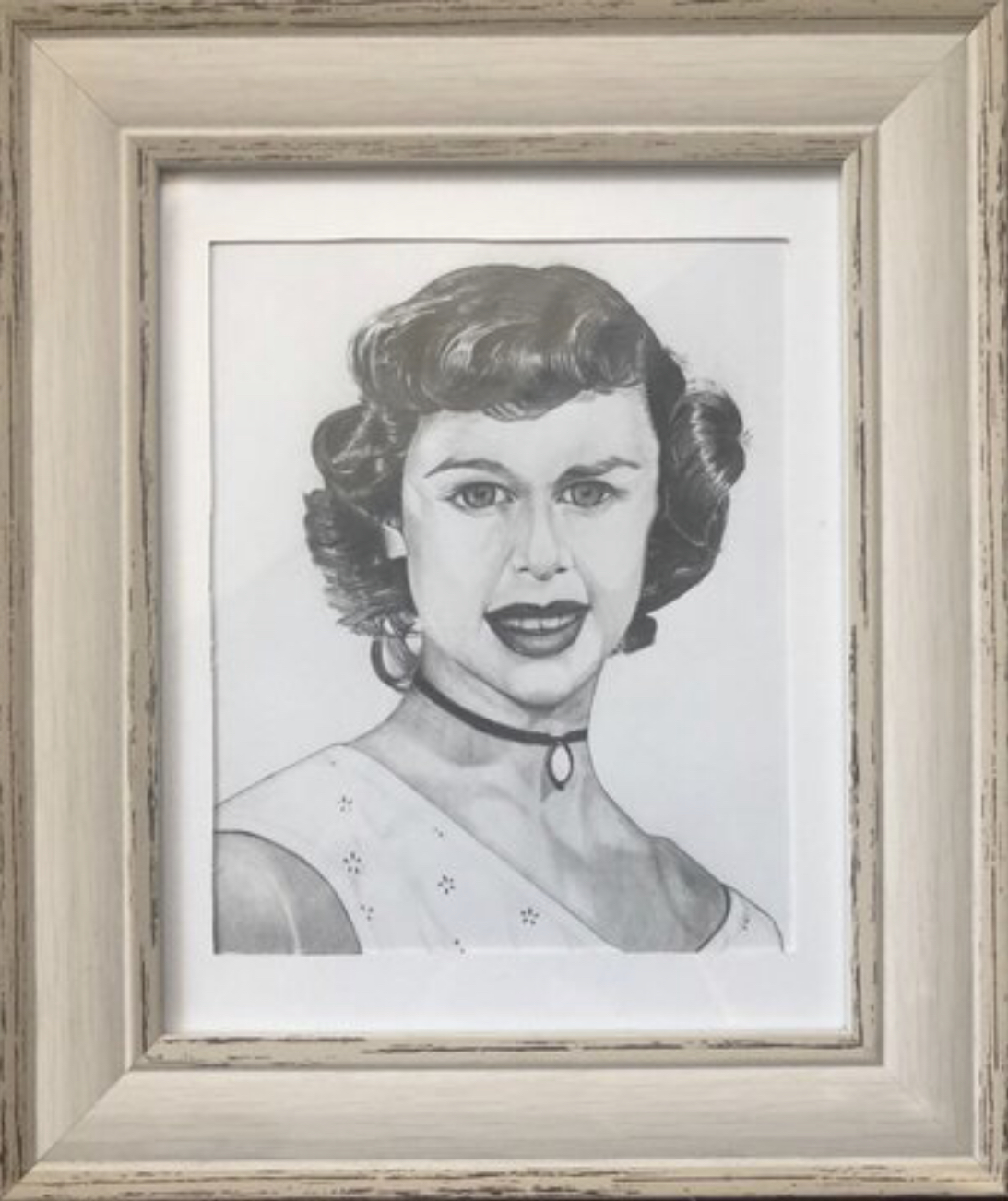 One month later I did this one as a surprise gift for my buddy Thyle—a portrait of his deceased mother I copied from a 30 year old picture and then I customized a frame to put it in: