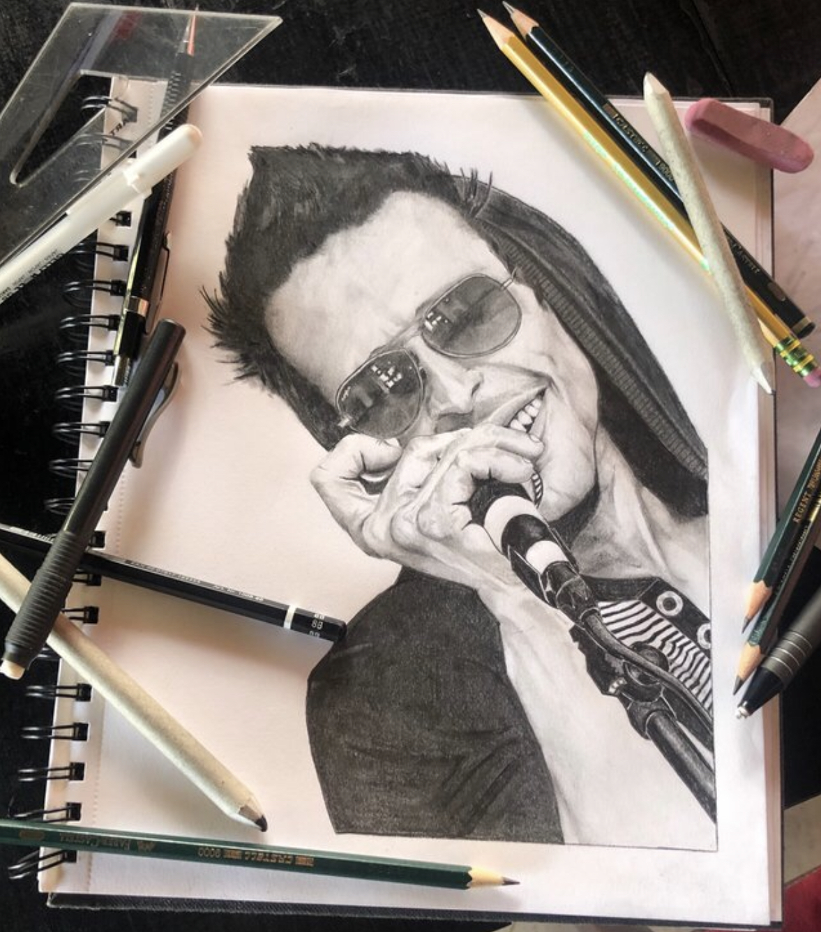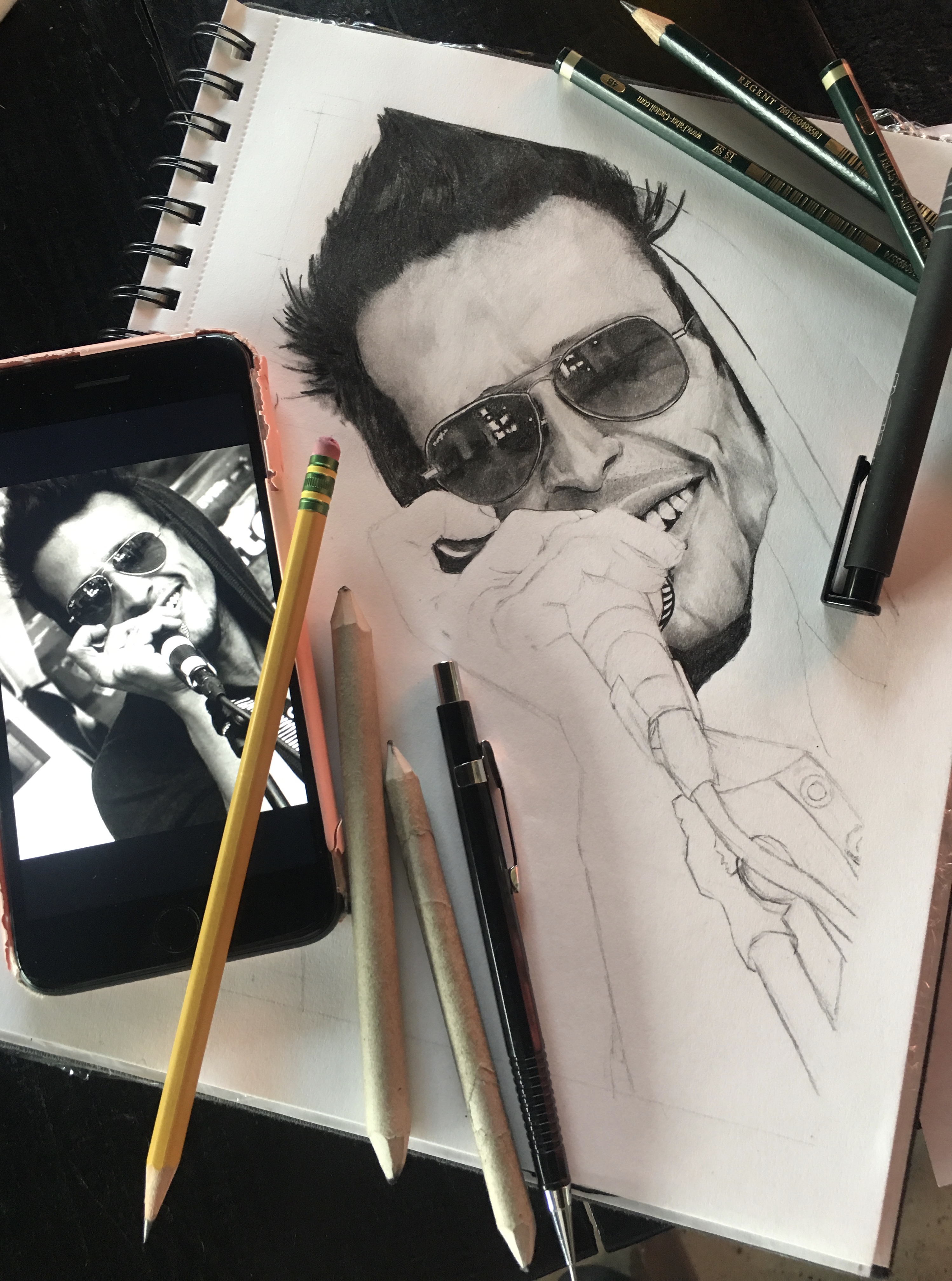 All of the progress pictures can be found here in the original piece. I’ll attach a few images but you’ve already seen them when you caught the interview. What I wanted to share with you this time is the techniques I use to draw these portraits and the past year and a half of my progression on this platform, thank you, #you! Thanks for hangin’ out with me this whole time, you got me to make shapes again with pencils after about 28 years of no #drawing, I don’t know how you did it but I’m impressed—thank you! Let me know if there’s something I left out.