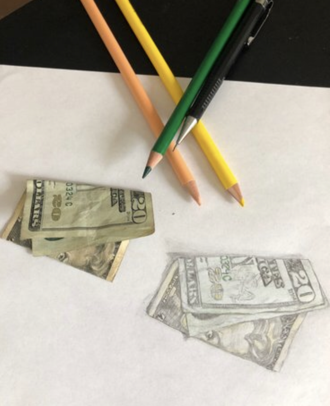Fact: before joining #steemit in September, 2017, the last time I drew something was in 1990, 9th grade—a portrait. I hadn’t drawn anything since I was a freshman in high school when I saw @vaansteam draw a $1 bill. I wanted to try it. I went down to the local Rite-Aid and bought the cheapest set of colored pencils they had and posted my first drawing on Steemit—a $20 bill. The only pencil I had at the time was in my toolbox, a mechanical, 0.7mm lead: