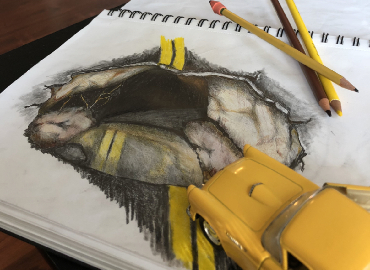 That’s when @adelepazani told me about lighter and darker colored pencils called graphite’s, I had no idea—I thought all pencils were either a No. 2 or a mechanical. Thanks, Adele! I learned some graphite’s have really light lead, even lighter than a No. 2 lead and, some have lead so dark, the greatest erasers in the world can’t touch it. Before I looked for a set of graphite’s, I posted two more colored-pencil drawings, this is the second one I posted: