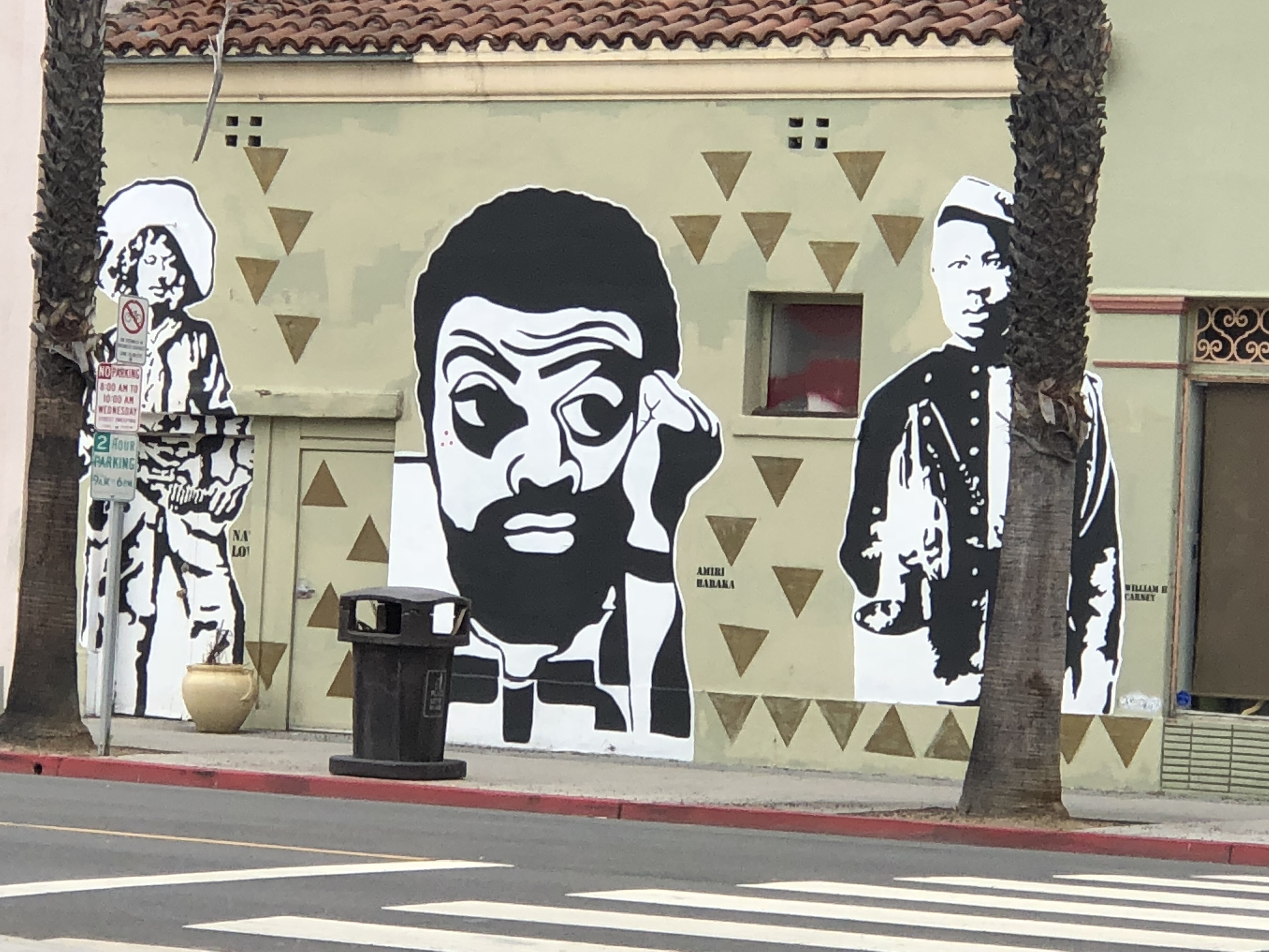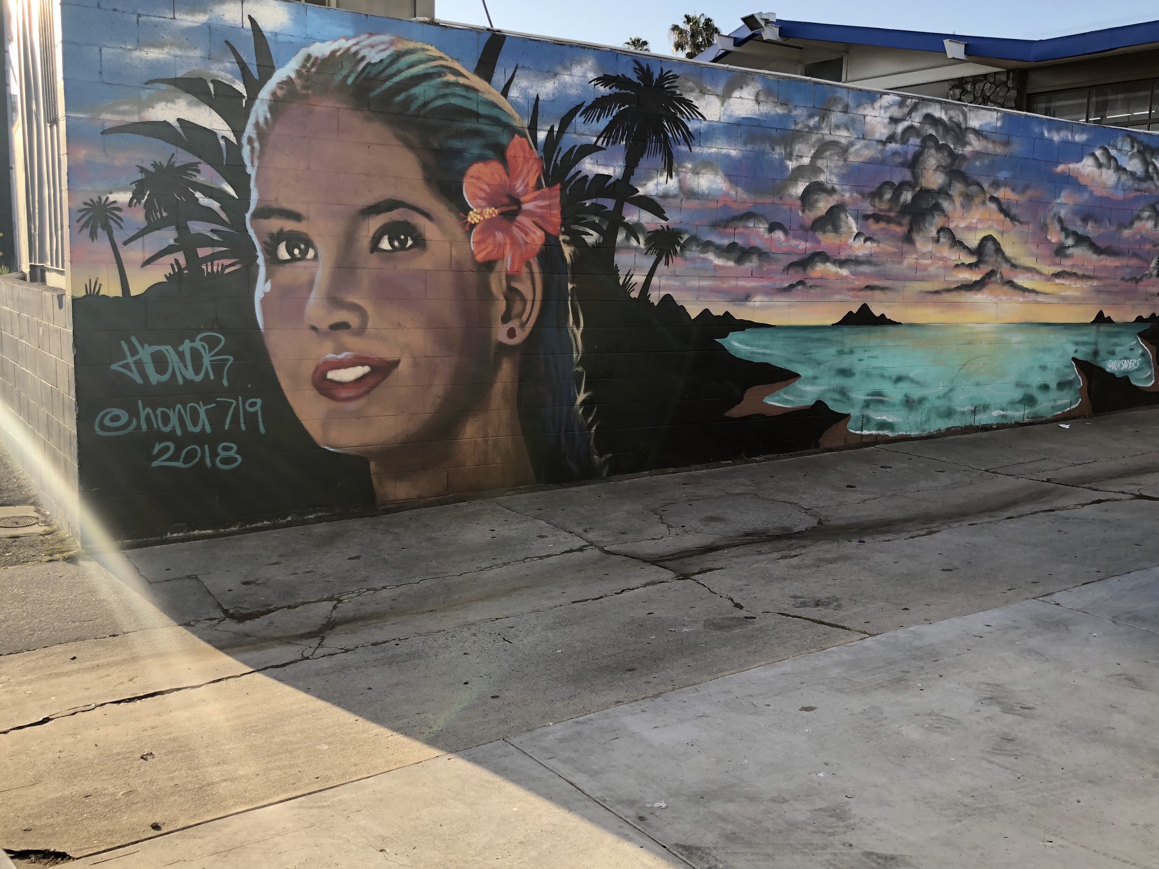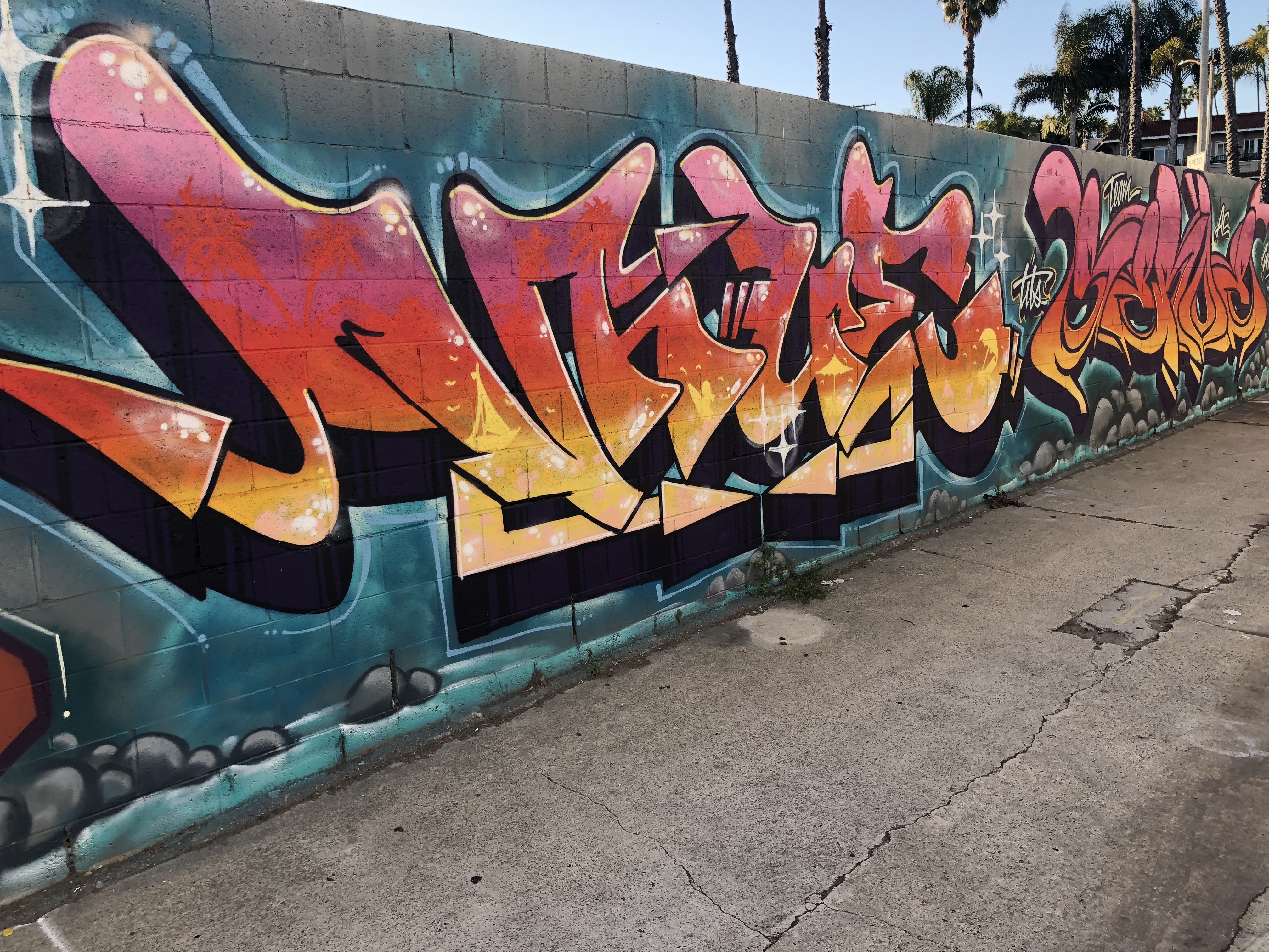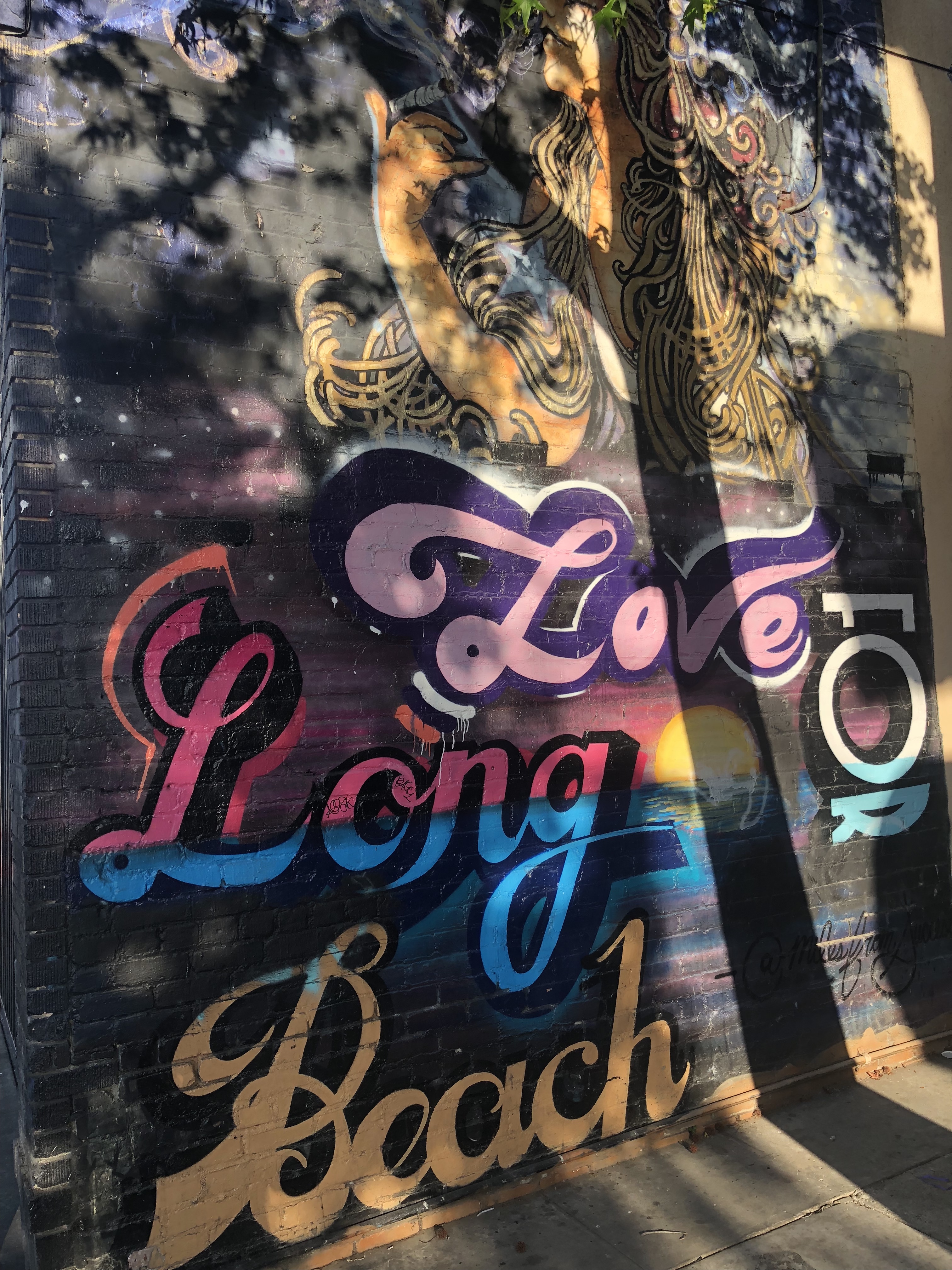 A pair of uncooperative palm trees refused to stop casting their shadows on the mural, can you tell it says ‘Long Beach?’