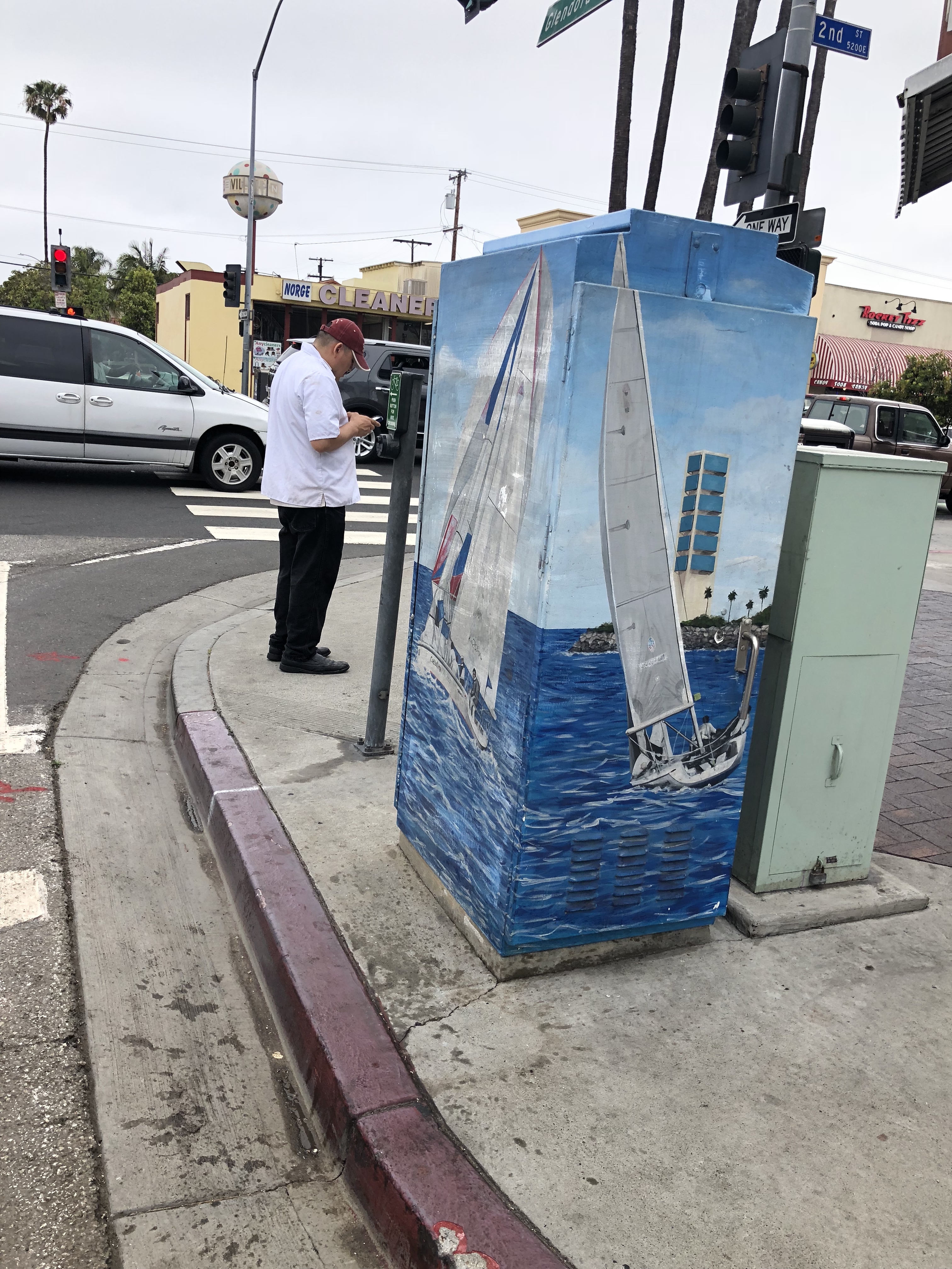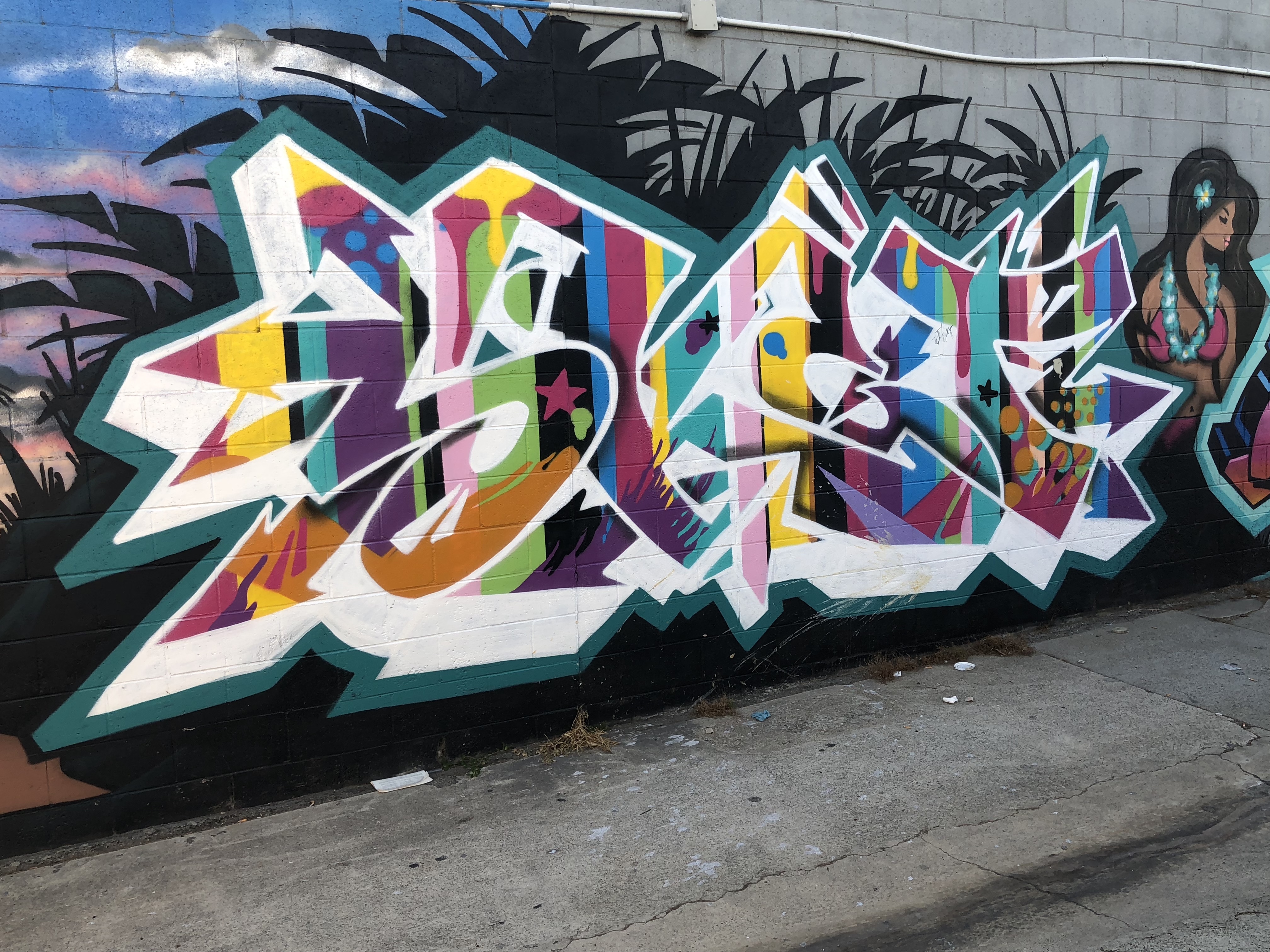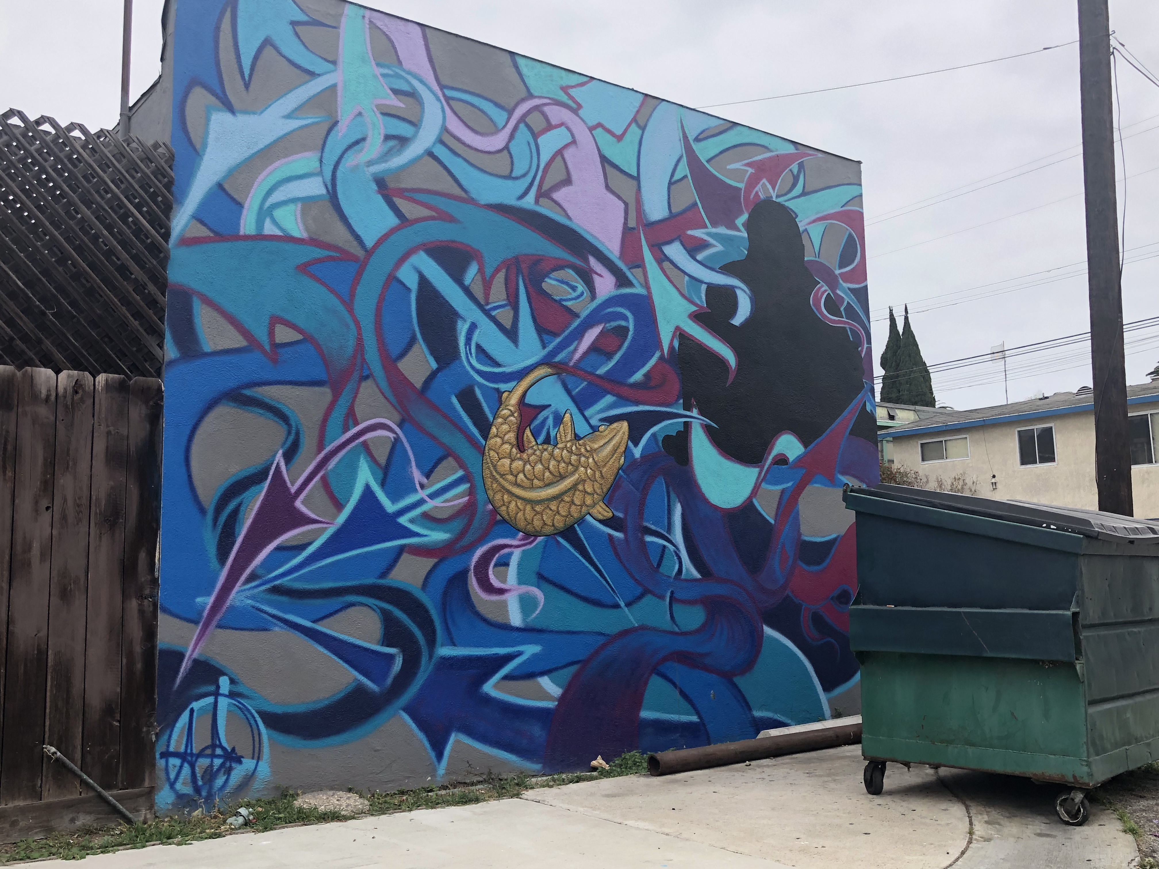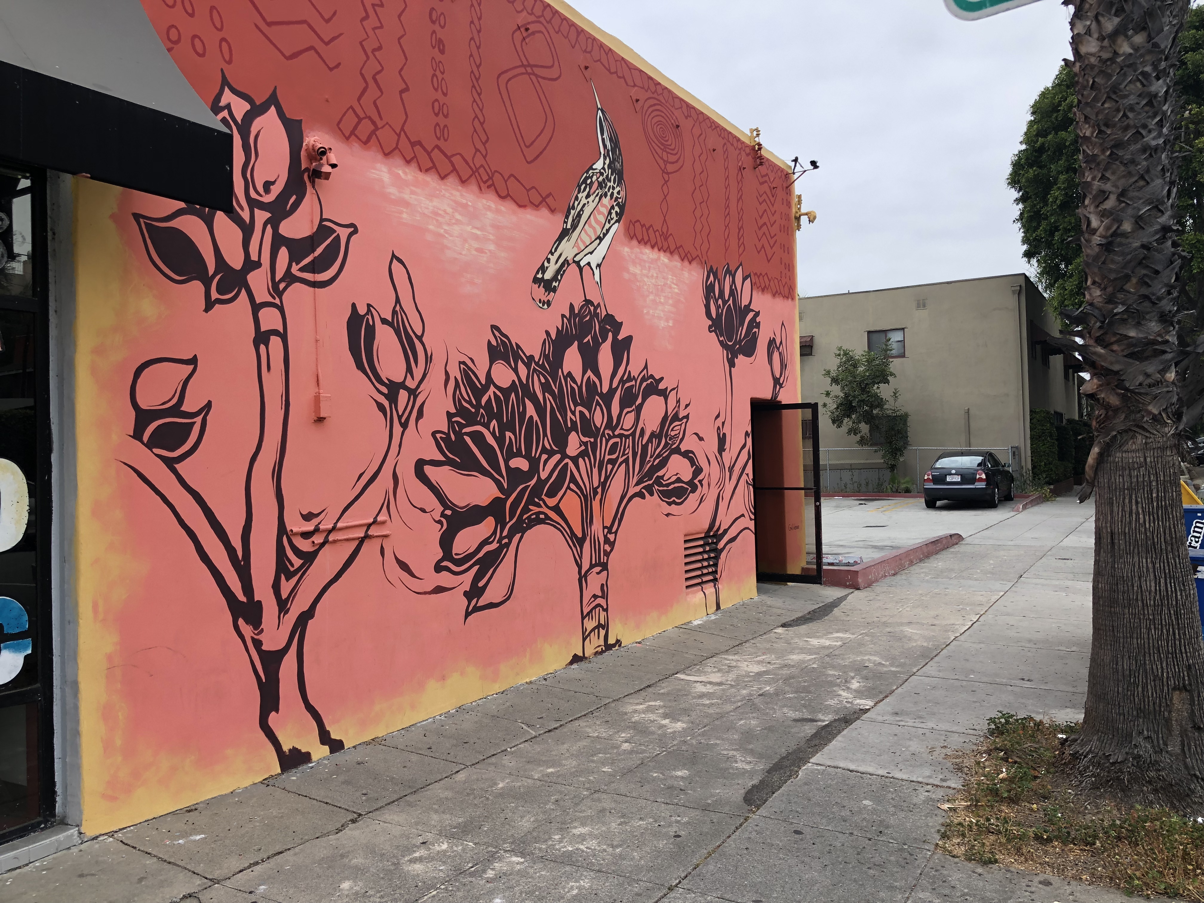 A pair of uncooperative palm trees refused to stop casting their shadows on the mural, can you tell it says ‘Long Beach?’