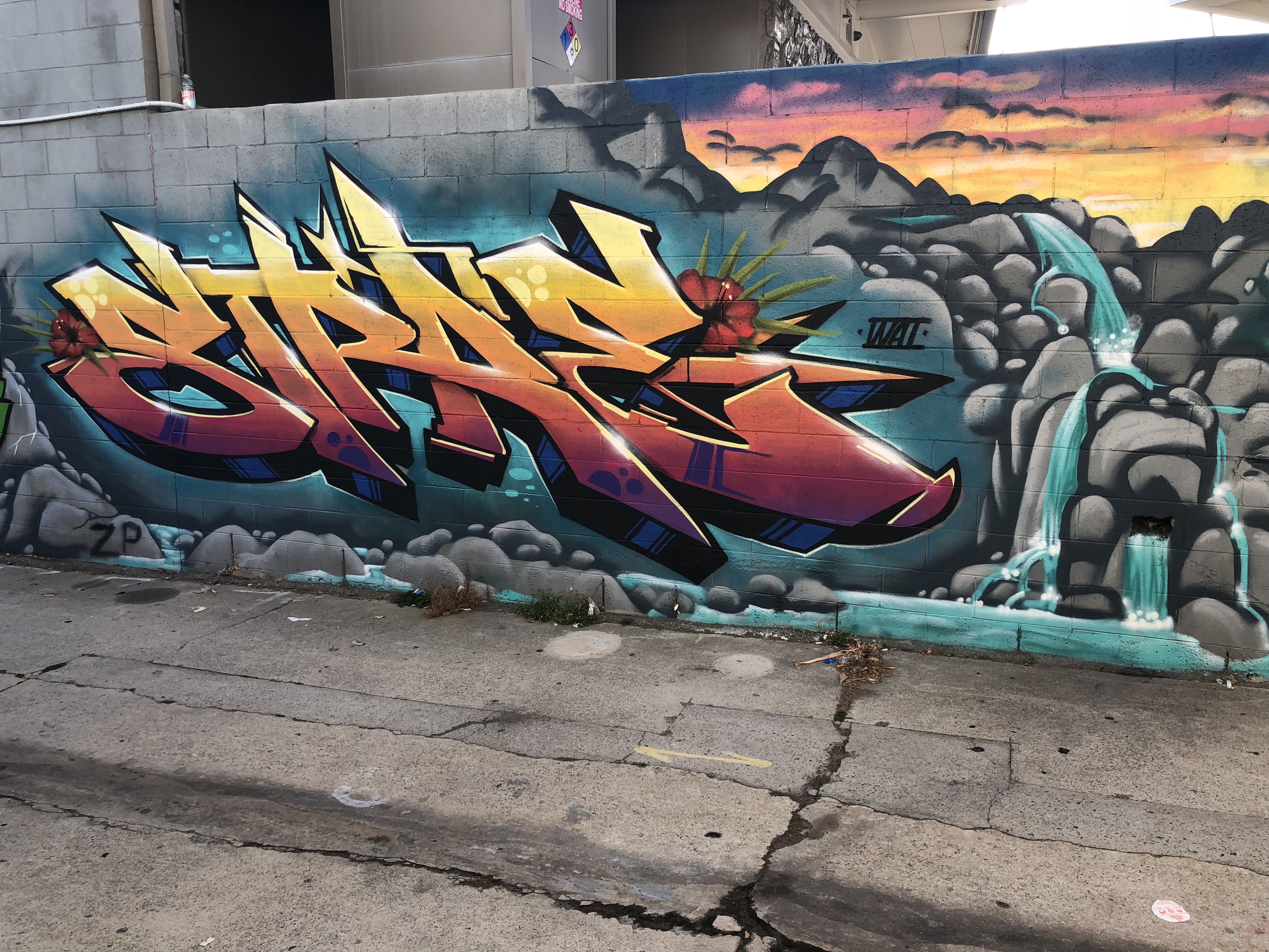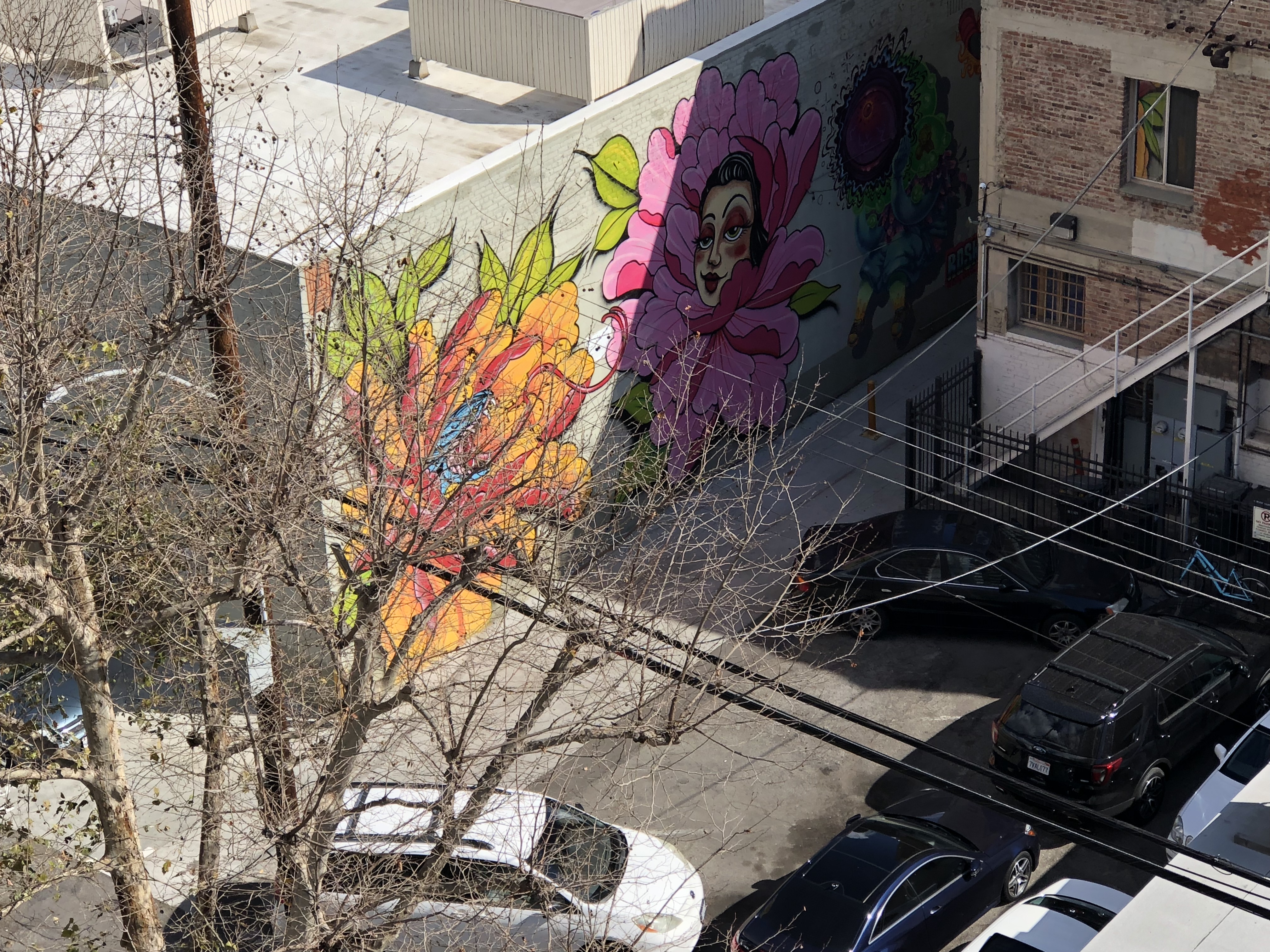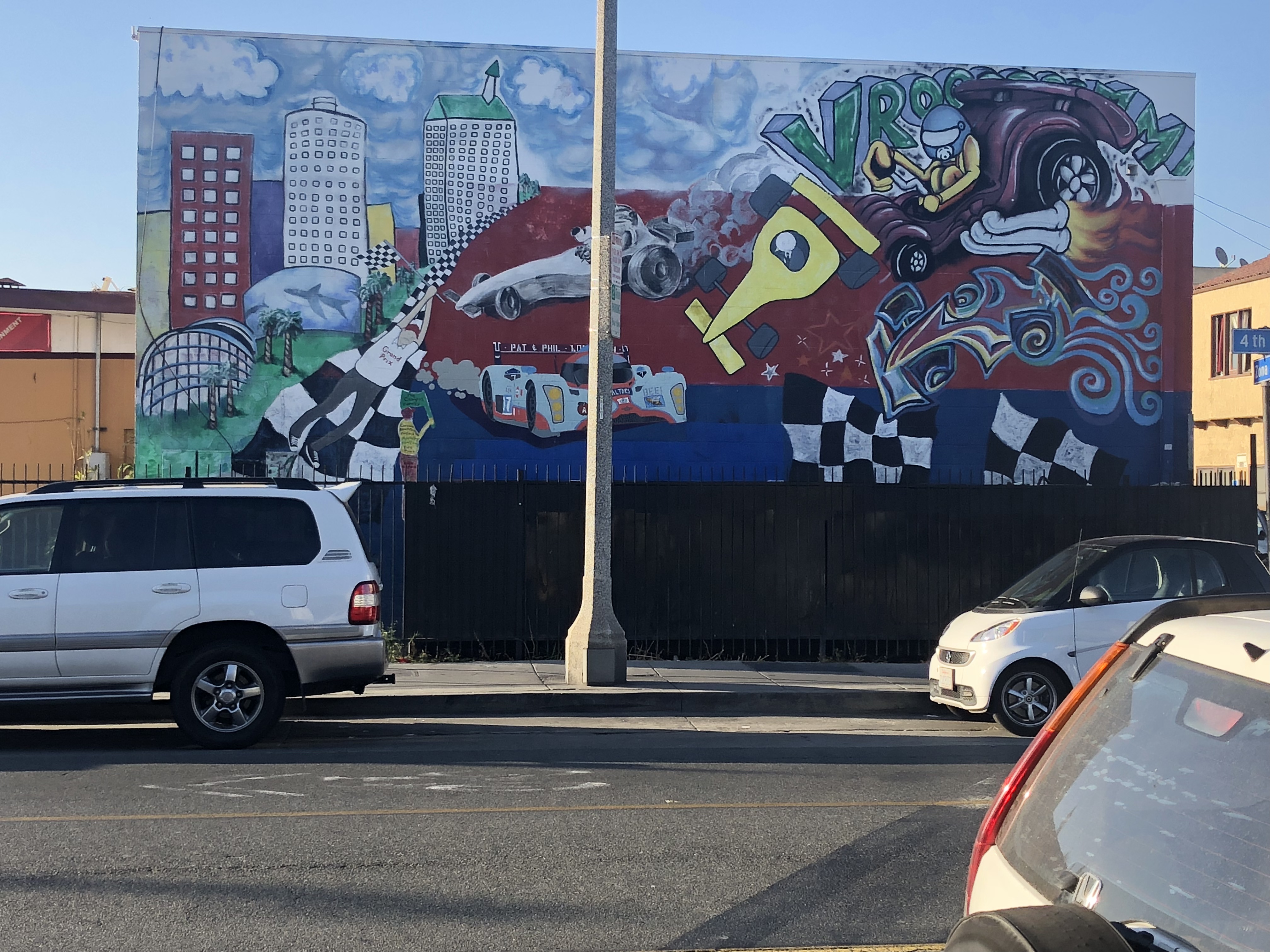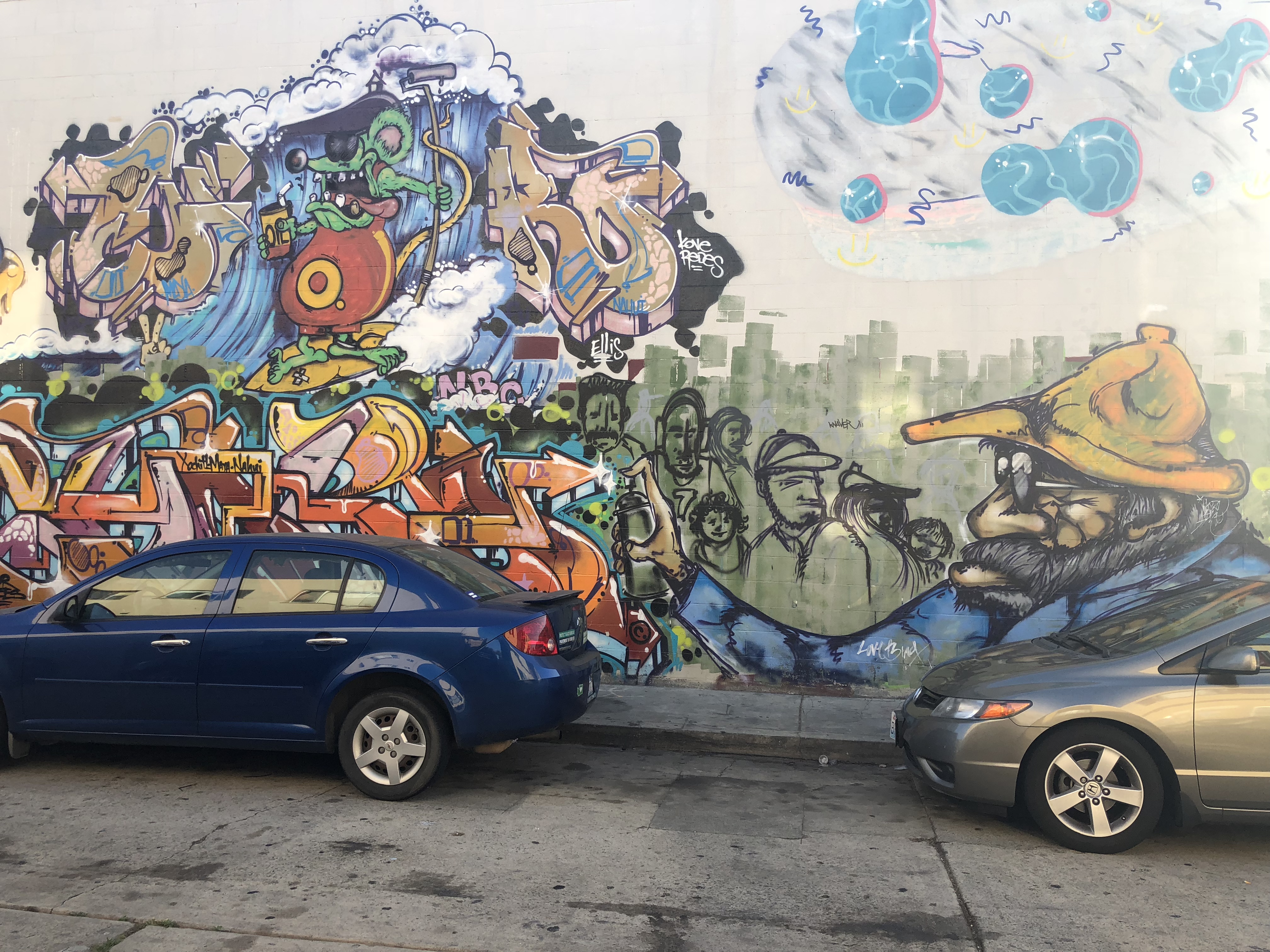 A pair of uncooperative palm trees refused to stop casting their shadows on the mural, can you tell it says ‘Long Beach?’