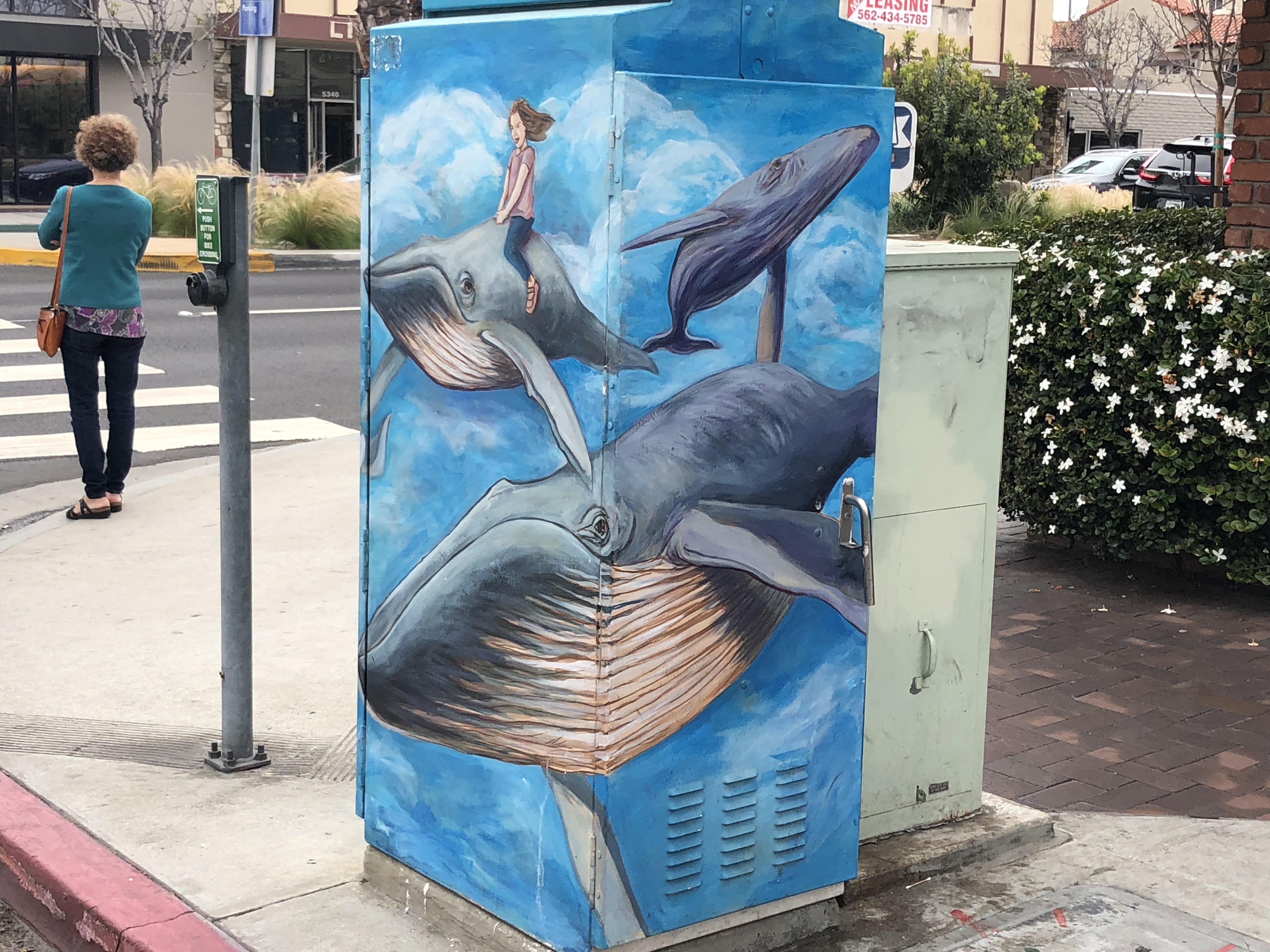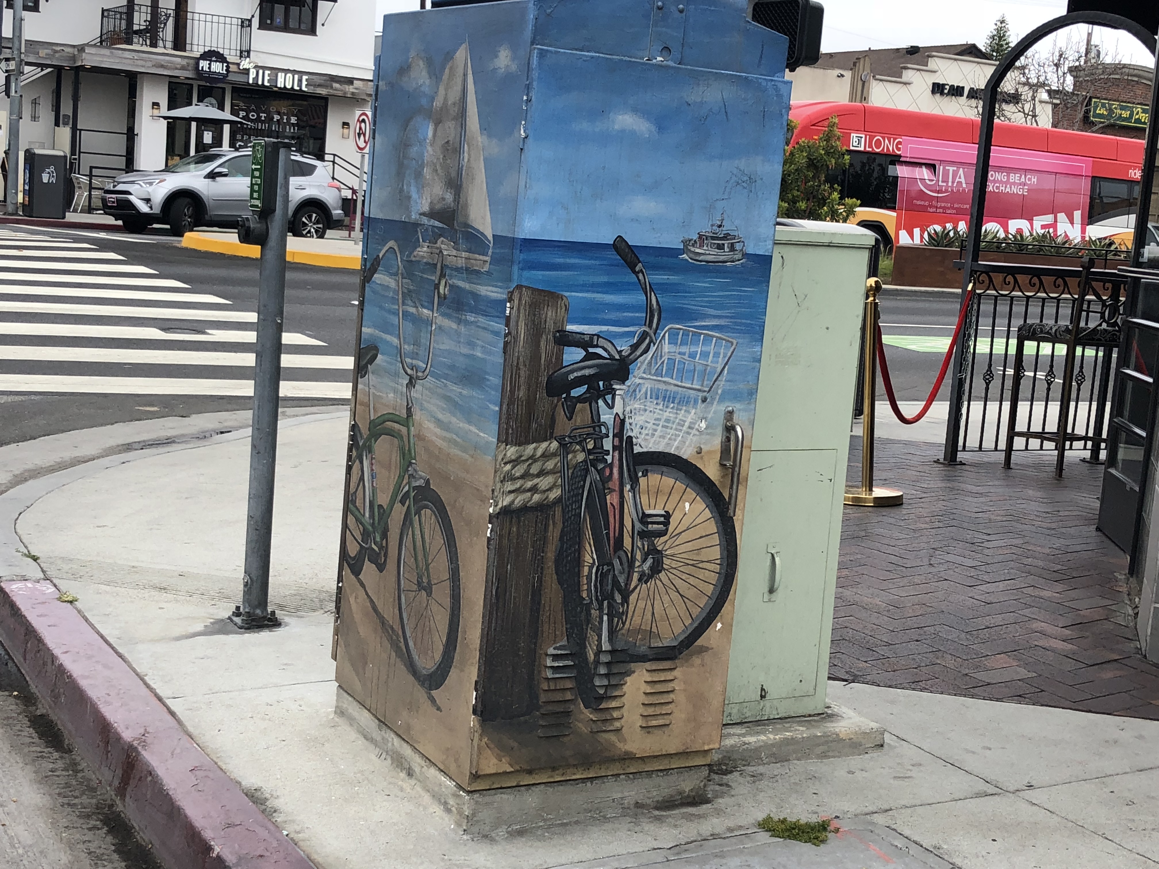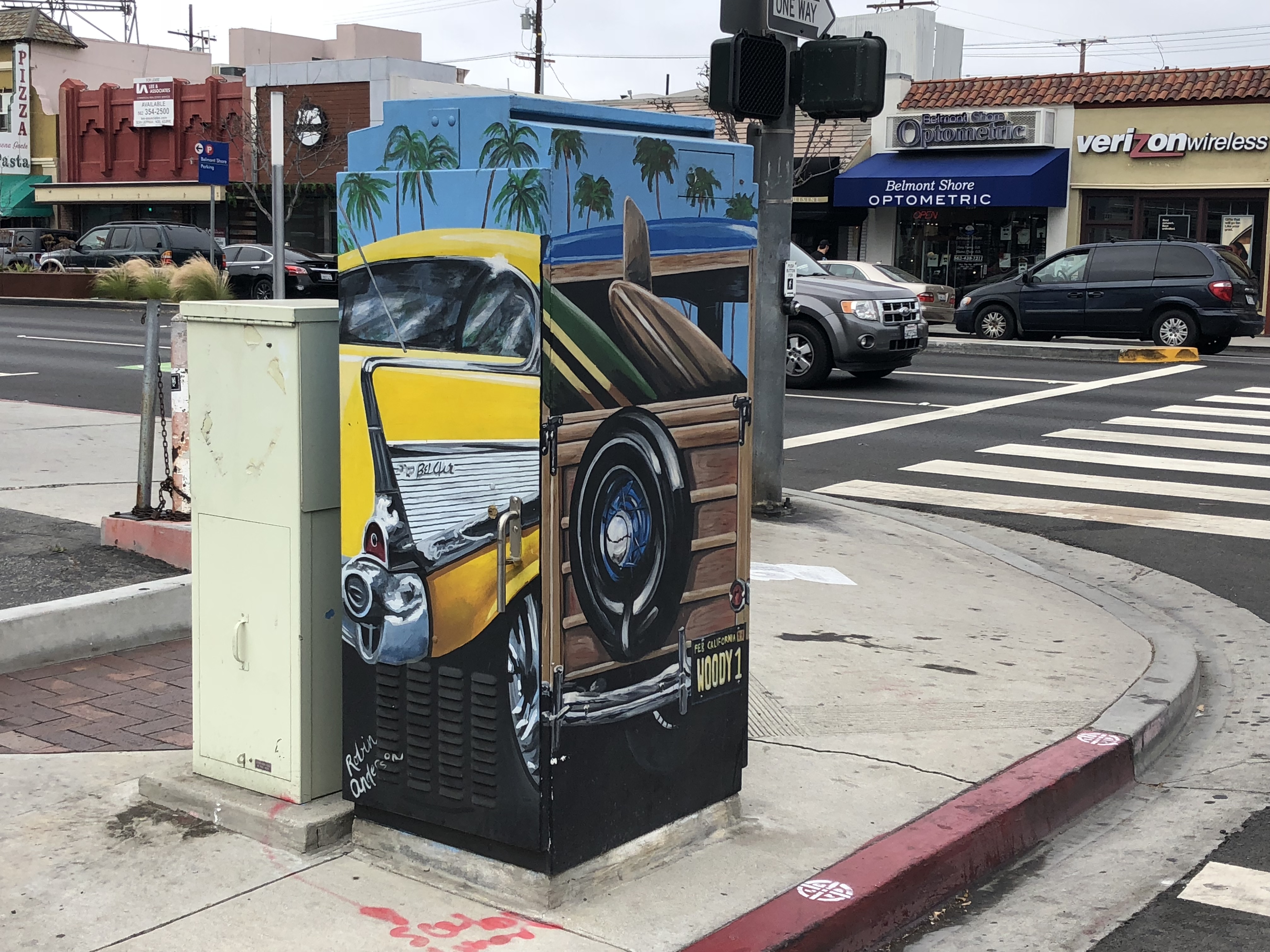 Don’t miss the data cabinet on the corner! Nearly every intersection in the city has phone/cable/fiber optics, etc. combined in “Combiner Boxes” and it’s rare to find one without paint: