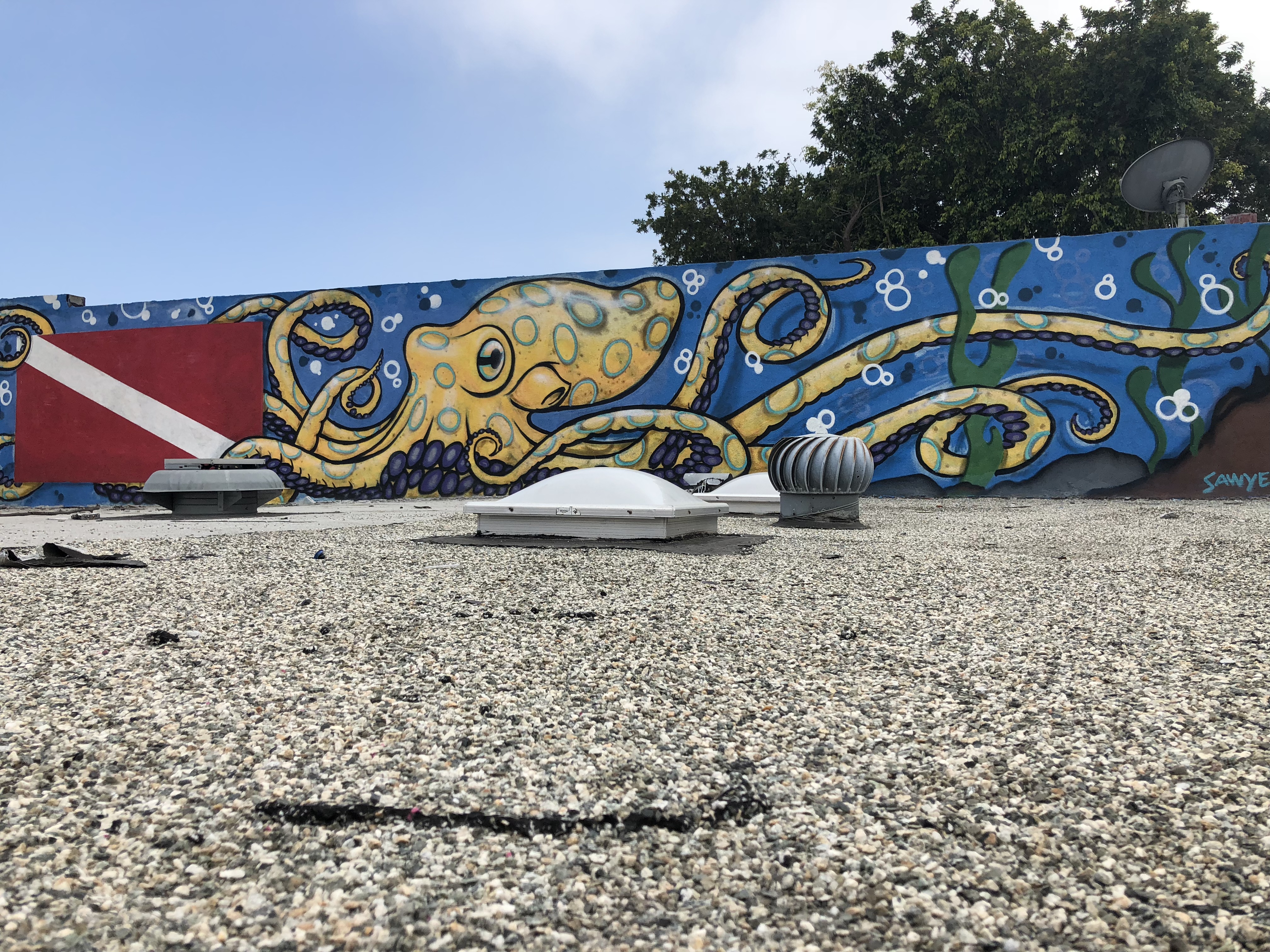 Next door to the dive shop is a taco joint, they share the same parking lot. I’ve never eaten there but the outside dining area has some good looking paint: