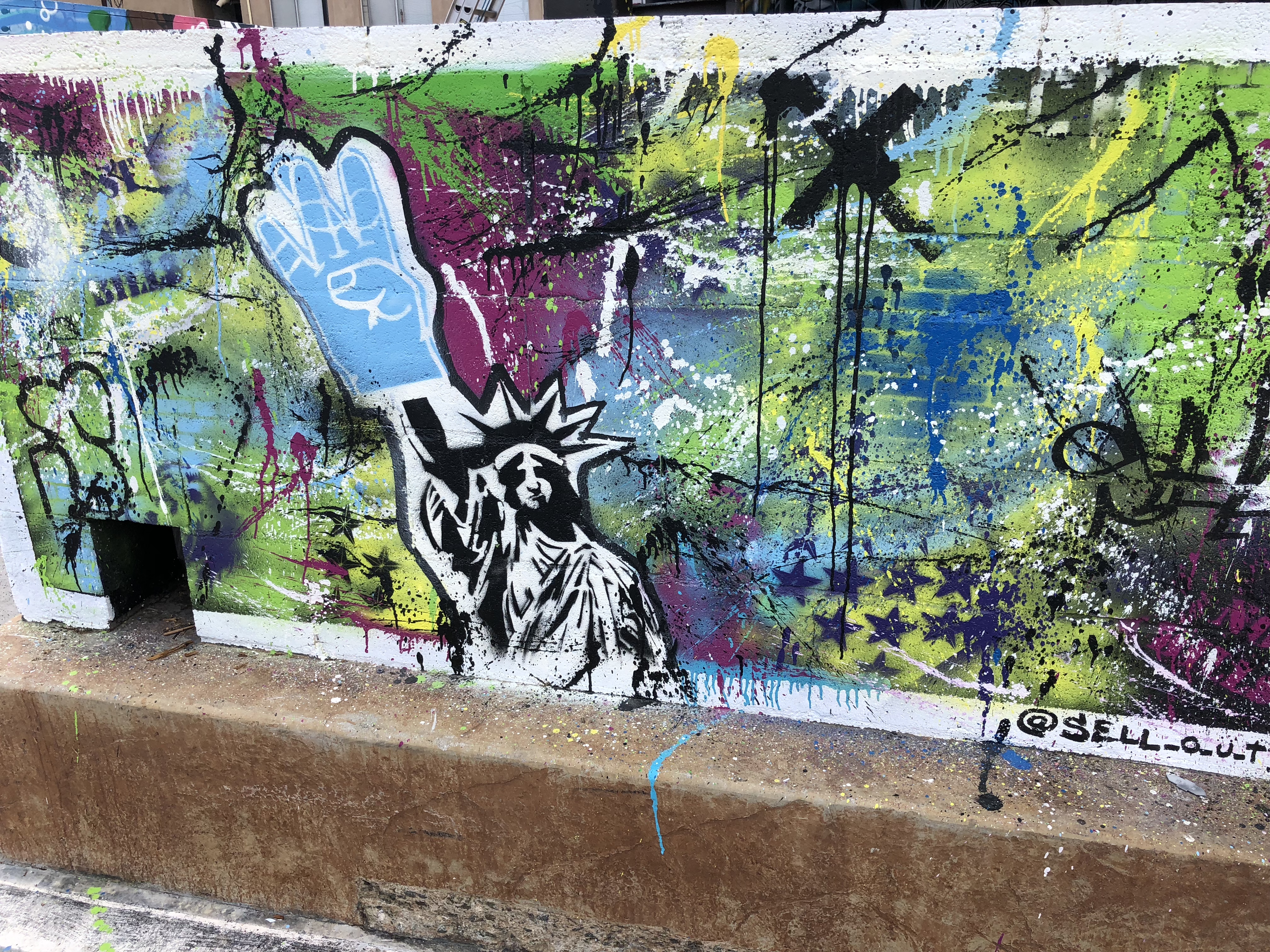 Side. Cool idea - The artist spray painted a mural of someone spray painting a mural