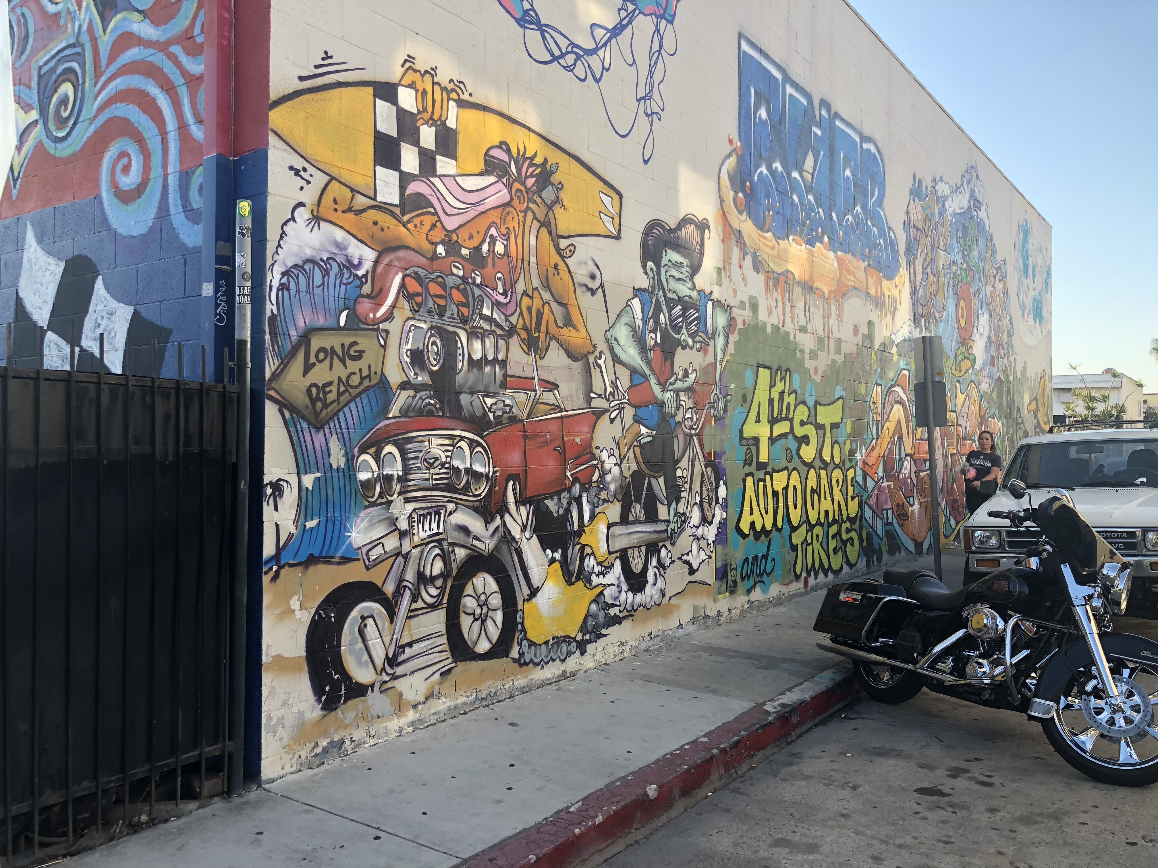 4th Street Auto Care, right across the street, you won’t miss that one either - Their building has Street Art all along the front and all the way down the side: