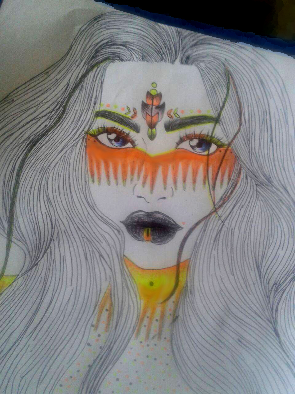 Hello steemeans, I would like to share with you this drawing I made today, I did it on a sheet of bond paper, with yellow and black orange markers, I hope you enjoy it ....