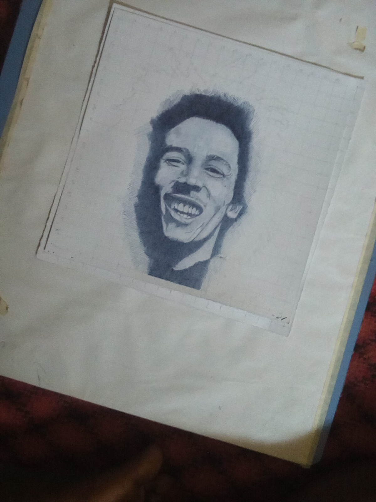 Second stage made more progress he's complexion a fair but the dark shades around his face and his hair will help bring out the complexion. As you can see the shading technique is hatch and crosshatch.