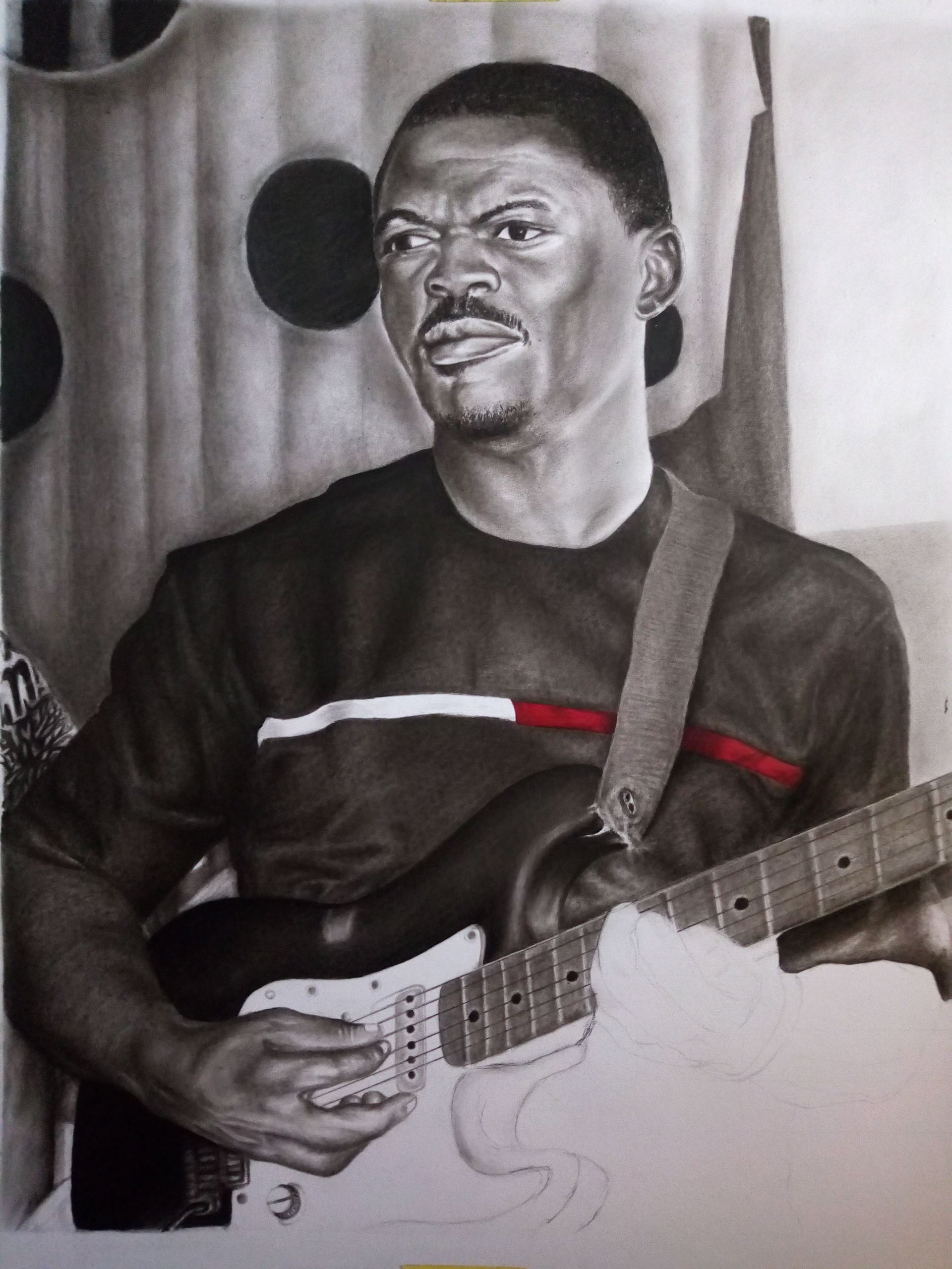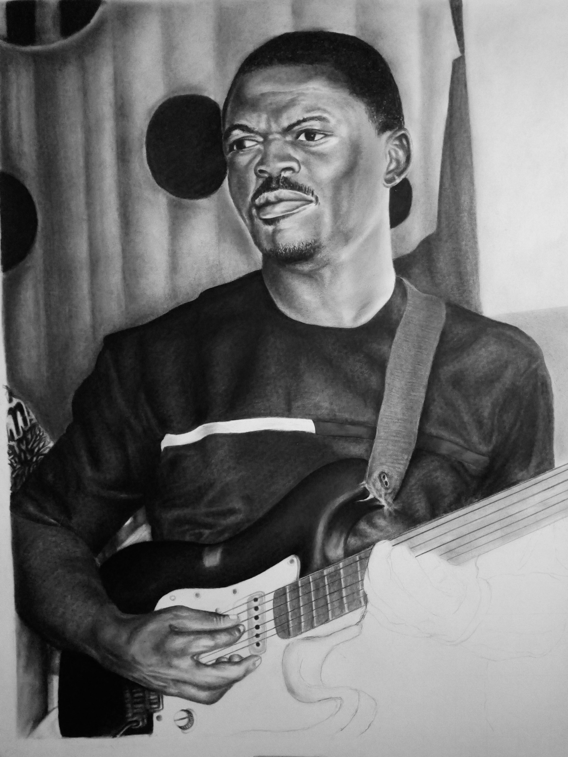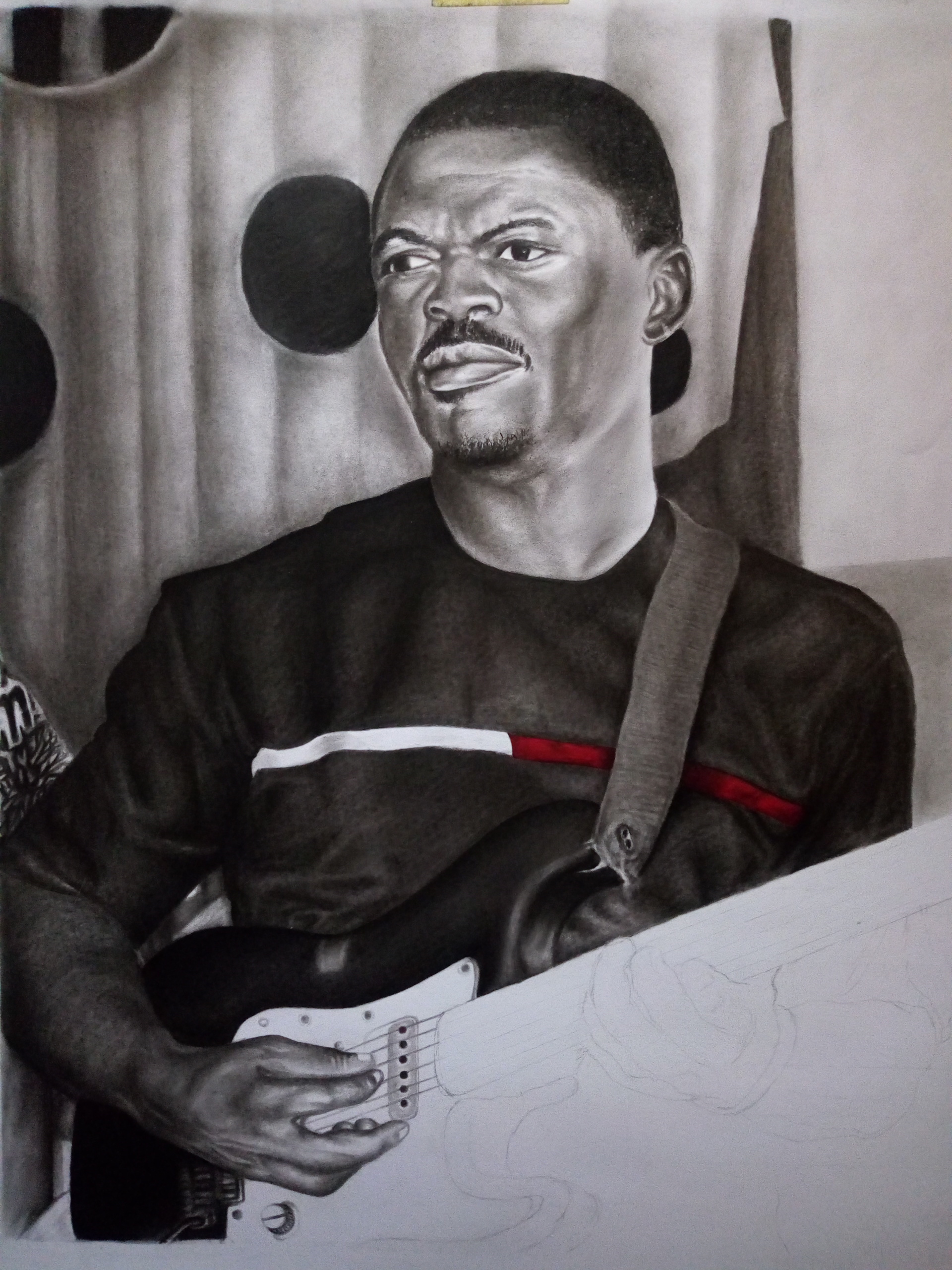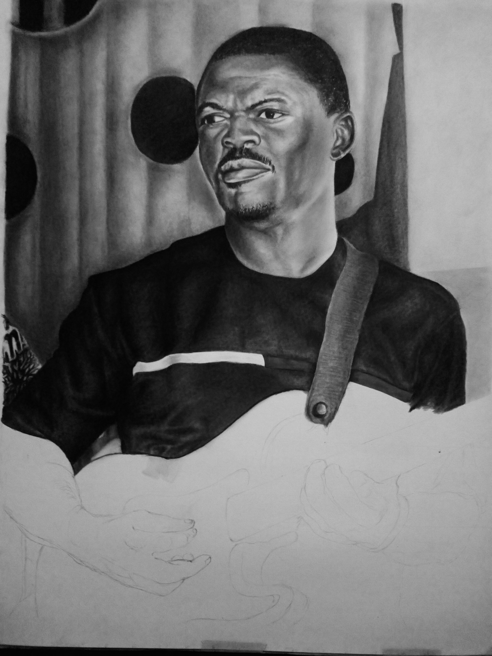 Hello folks, your favorite artist @guchidan is finally here again, hope we are all good? this is one of my latest project i have being working on, it's Actually a commissioned work, i started this work last week and am happy i completed it today, it's an HYPERREALISM drawing. This work gave me goosebumps and so much head aches, most espessially that guitar, up to the extent i almost had an accident on this work, nevertheless i was still able to take alot of progress shots while working, and no accident occurred again, i hope you enjoy my shots as you go further.