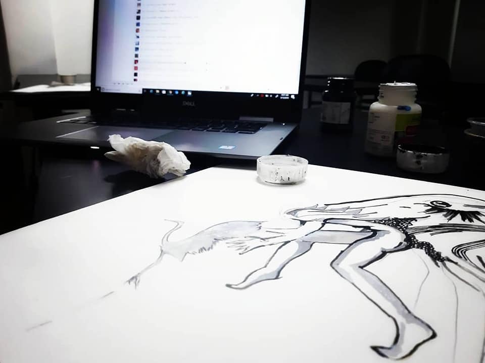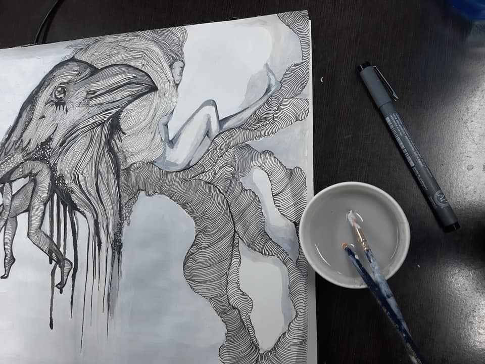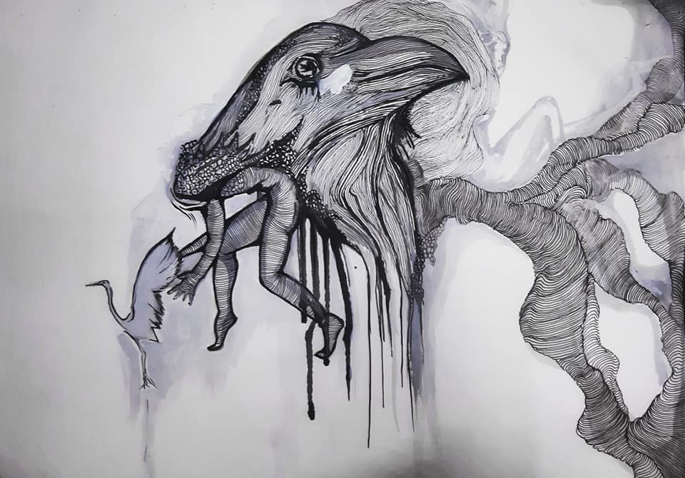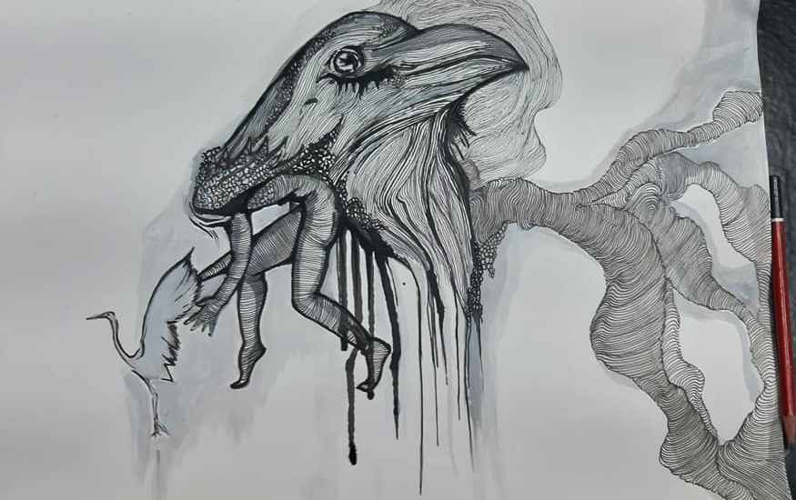 Your drawing is always amazing, though, Swati <3 I love how gothic and how beautiful they are and this one is very much gorgeous, as always :) Really liking the crow and the bodies and all the fine lining across the forms * ___ * So pretty !