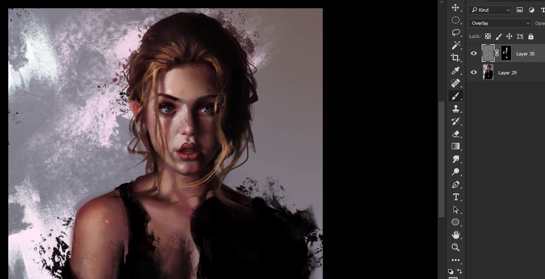 - Add a layer mask and fill it with black then paint with white over the skin to add texture , adjust opacity of the layer to 50%