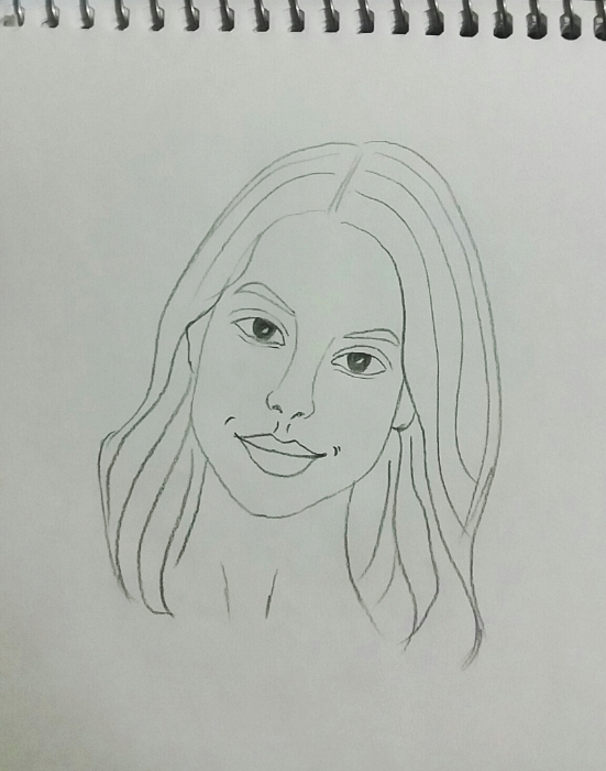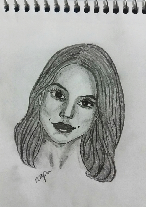 Portrait drawing in black and white with a black pencil.