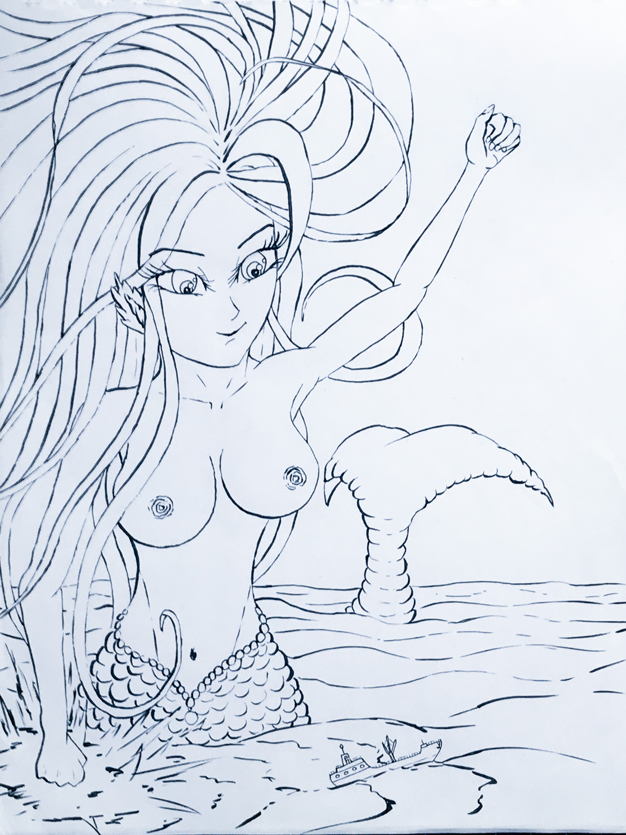 Which as you can see is quite harmless. Yeah, it is showing boobs and nipples, but - it is a giant mermaid from the land of Felarya (© @Karbo) having some 'fun' with a freighter hauling - most likely - some nekos or inus or something even more exotic.