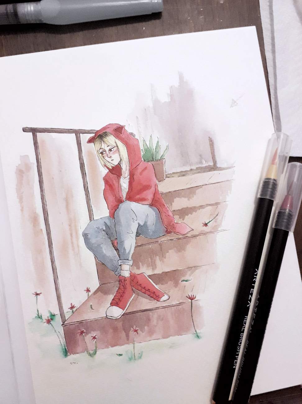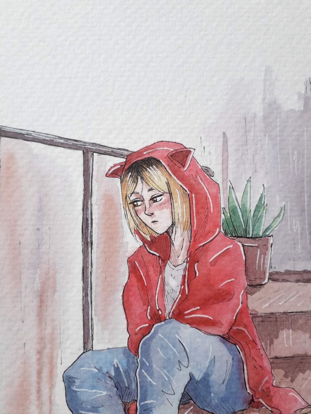 Hello! I finally got back to my watercolour supplies this morning and made this drawing of Kenma from Haikyuu.