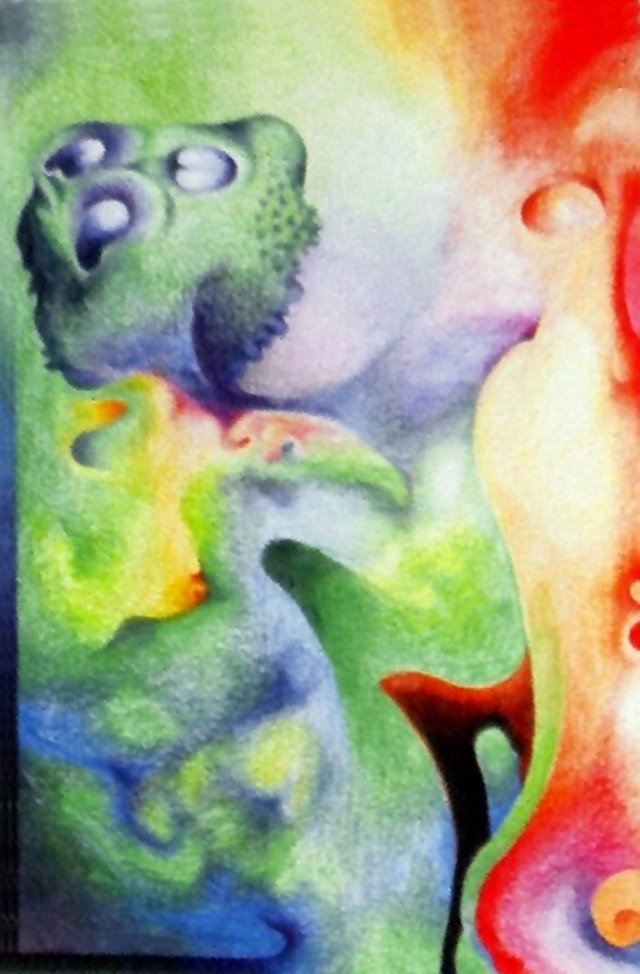 This is one of my rather rare color pencil drawings from the early eighties (no date marked on it - this is in a private collection in Austria).