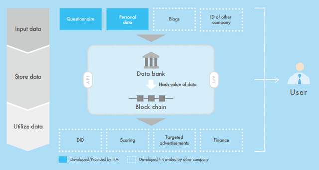 The input of their data on the platform earns them a bonus for using the platform’s tokens, these data are going to be be stored within the data bank system which the system shall calculate the values for every data and store in blockchain to make sure the info is protected. However within the future these data shall be monetized through the allowance of companies to integrate their businesses and applications with these information banks.