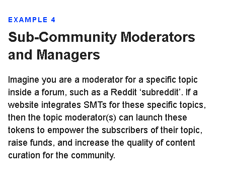 It definitely is an awesome and unique concept, but I don't think the common (aspirational)blogger will understand this issue until the time that he/she has already invested in creating a forum, site, community etc. as given in the examples. It could lead to disappointment over the fact that even after having SMT tokens on the site, the aim behind creating the site is not being achieved.