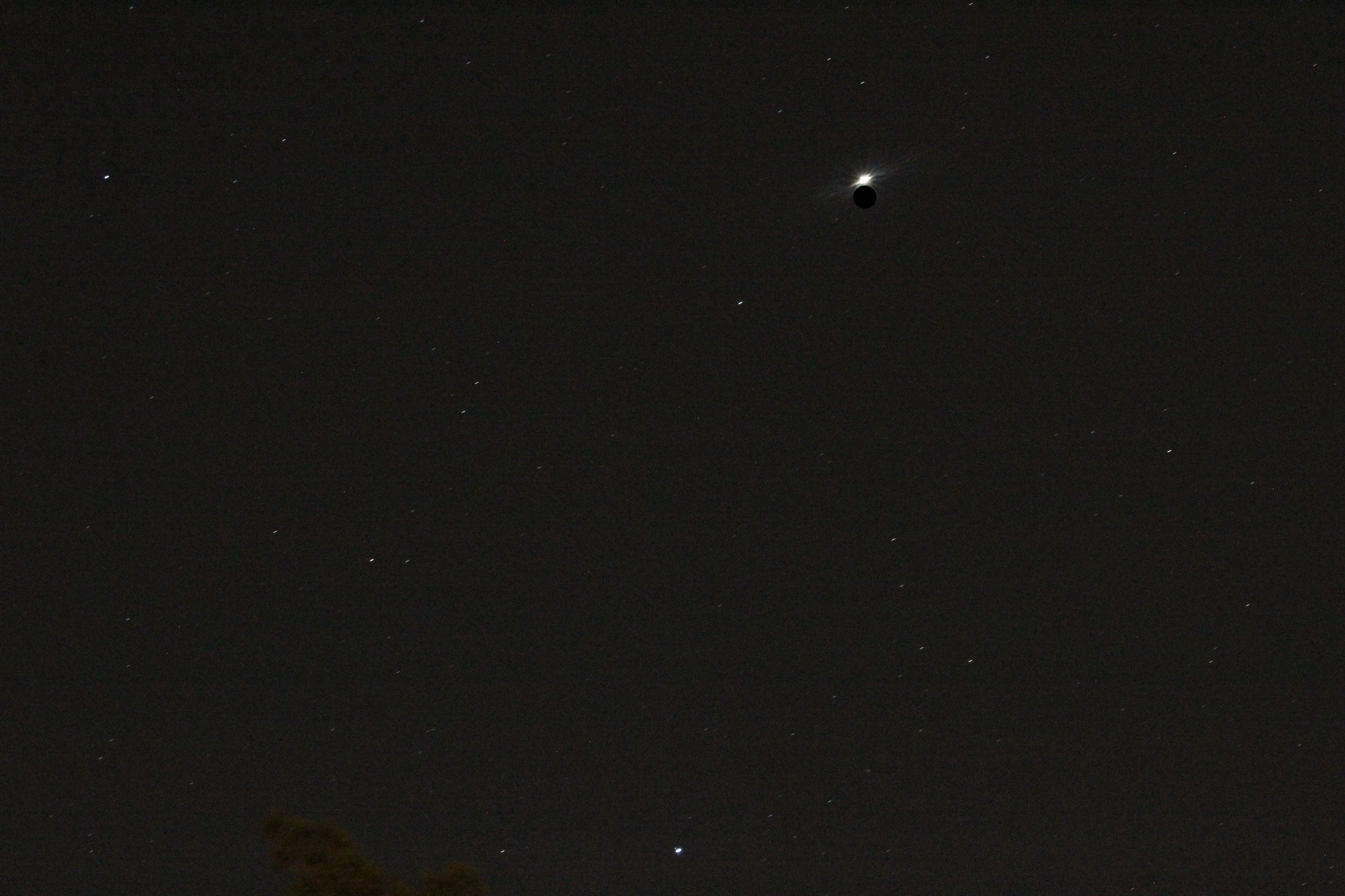 Its in the second (bottom) image. The black spot in front of the brightest star in the picture.