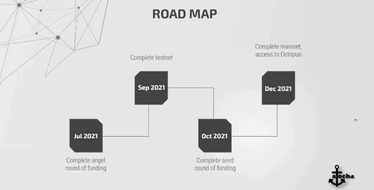 This is our plan for the future. In July, we can complete Angel Round funding and in September we complete our first test net. In October, we hope we can complete seed round. And in December, we access to octopus complete our main net. This is our plan.