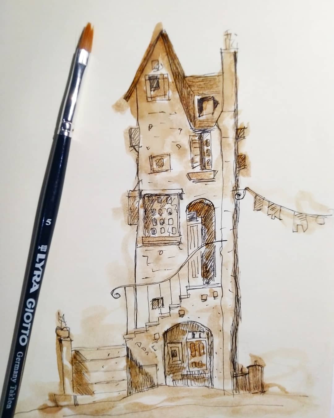 I used to learn how to color a sketch with coffee - as I did below - , but it wasn't easy when you haven't done it for almost a year.