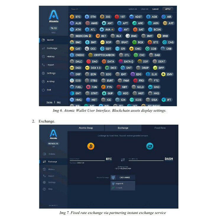 ATOMIC WALLET FEATURES: Atomic Wallet is built to aid smooth assets management for crypto assets holders and traders by creating a more favorable user interface and security practices to enable assets holders successfully manage their assets in one wallet. Atomic Wallet which is meant for storing crypto assets, (currently supporting over 300 coins and tokens) will also support exchanging of those crypto assets making it a one stop decentralized app for cryptocurrency storage and exchanging. The wallet is built not just to support multi crypto platforms, but it's app will also support various online and applications platforms like Microsoft Windows, MacOS, Ubuntu, Debian, and Fedora, with further intentions to support mobile platforms like Android and iOS, web based apps platforms and browser plug-ins.