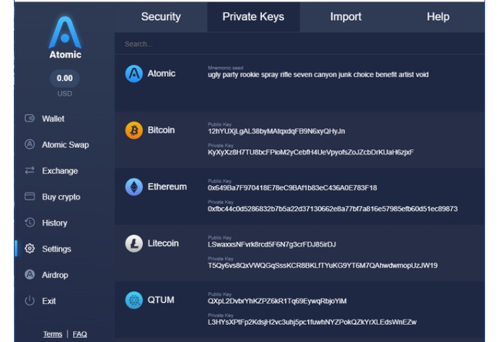 To duplicate your private keys inside the nuclear wallet application, go to the settings page and snap on the private keys tab on top, from that point you input your secret phrase and your mental helper seed and private keys will be shown on your screen. You should simply duplicate them to your clipboard and glue them to wherever you need to store them on.