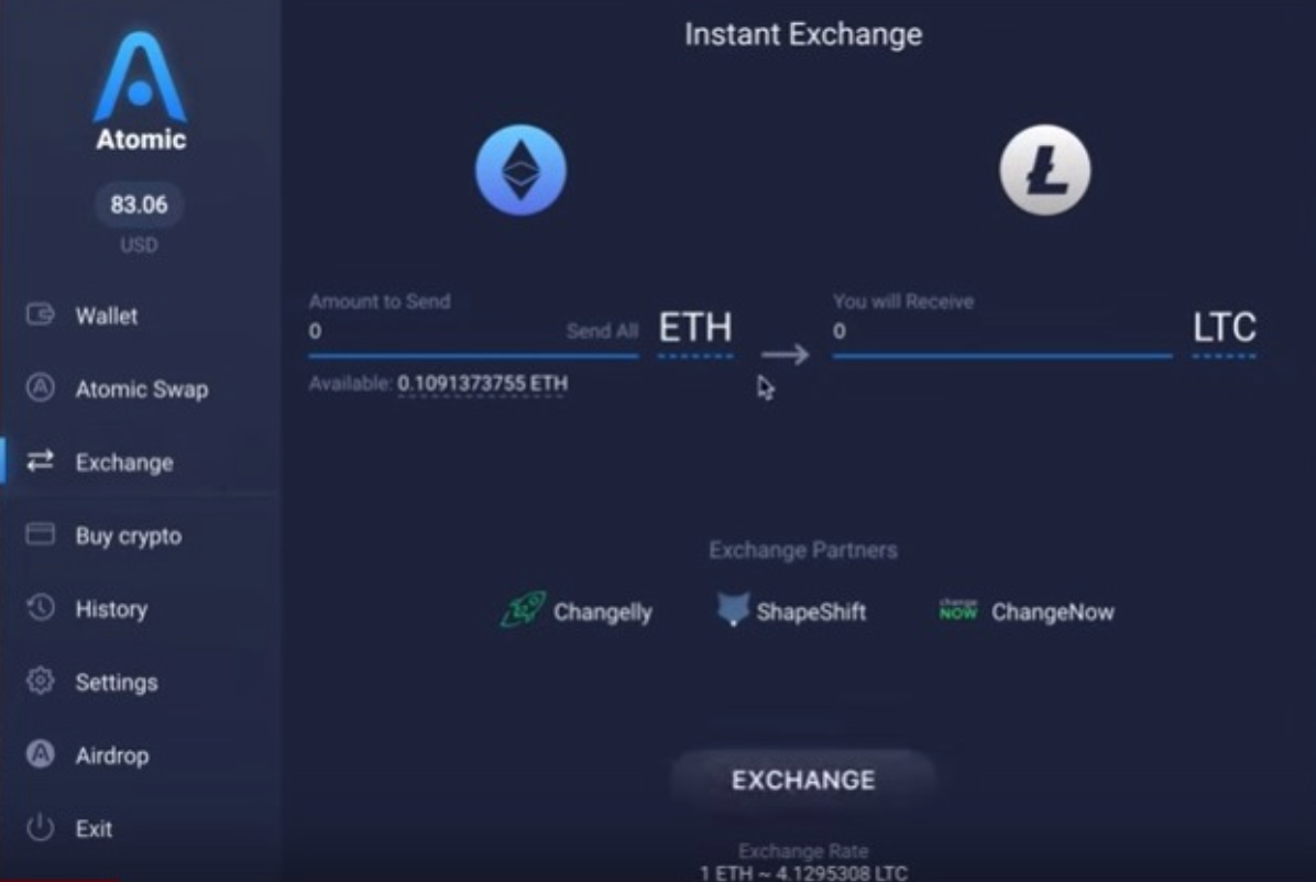 А вот Atomic Wallet это может делать. Не только ETH, BTC, LTC, но и свыше 300 монет доступны к обмену. И это, несомненно, одно из главных отличительных условий использования кошелька.