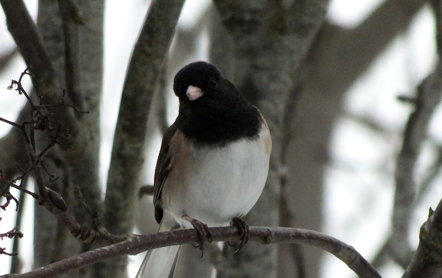 Winter bird in one of our trees... waiting for me to refill the feeder