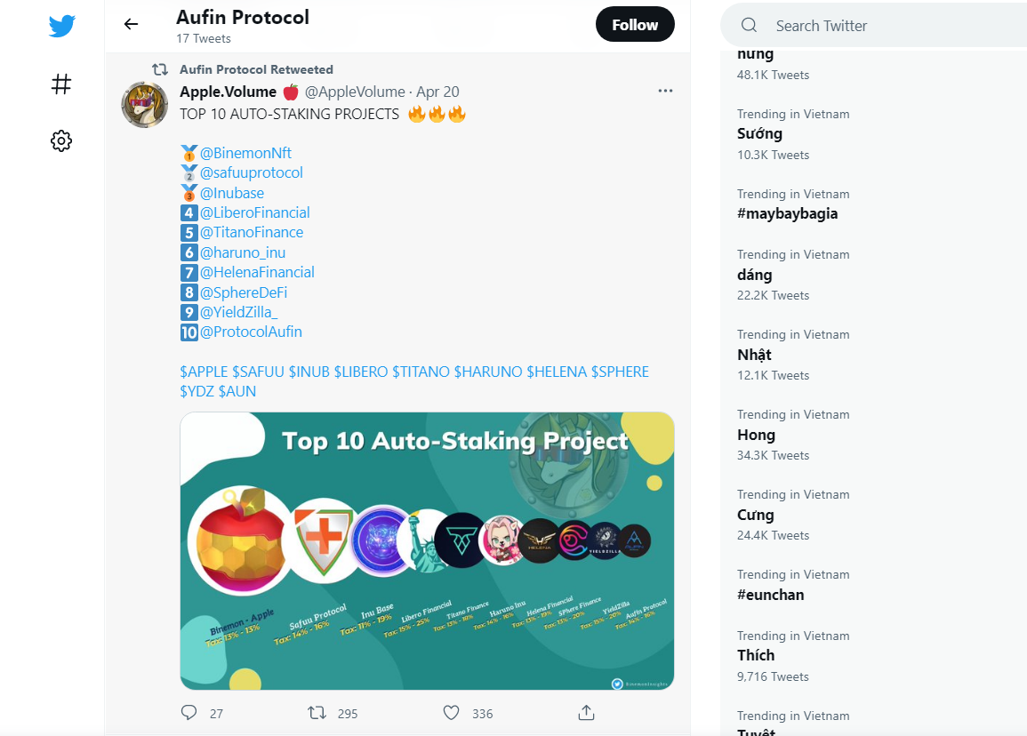 ***) Aufin Protocol is shortened form of Automatic Financial, a protocol that provides a decentralized financial asset which rewards users with a sustainable fixed compound interest up to 480,419.00% for the first 12 months.