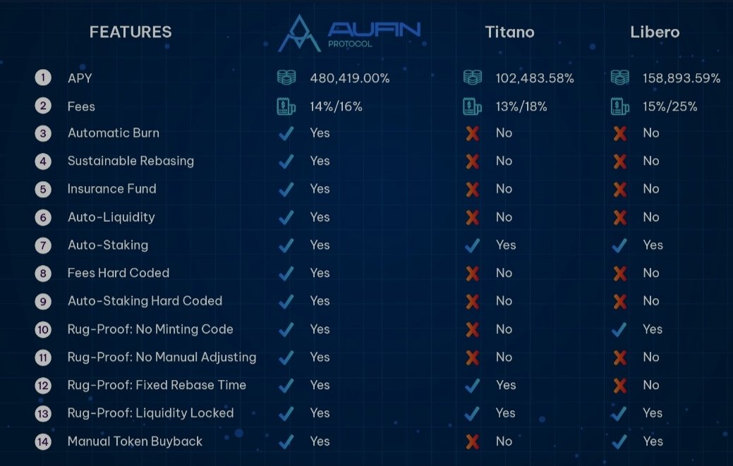 The Aufin insurance operates an algorithm that supports the rebase rewards and is assisted by a part of the transaction trading fees accumulating in the insurance wallet. Simply put, rebase rewards or staking rewards are allocated at the rate of 0.01613% every 10 minutes and backed by the specifications of the insurance to maintain and support the staking rewards made available by the positive rebase. Thus, guaranteeing a huge and stable interest rate to $AUN token holders. The Aufin insurance ensures the safety of its holders by; Avoiding market crashes through price stability, achieving long-term profitability and subsequent growth of the Aufin protocol, and curtailing downside risk to a great extent.