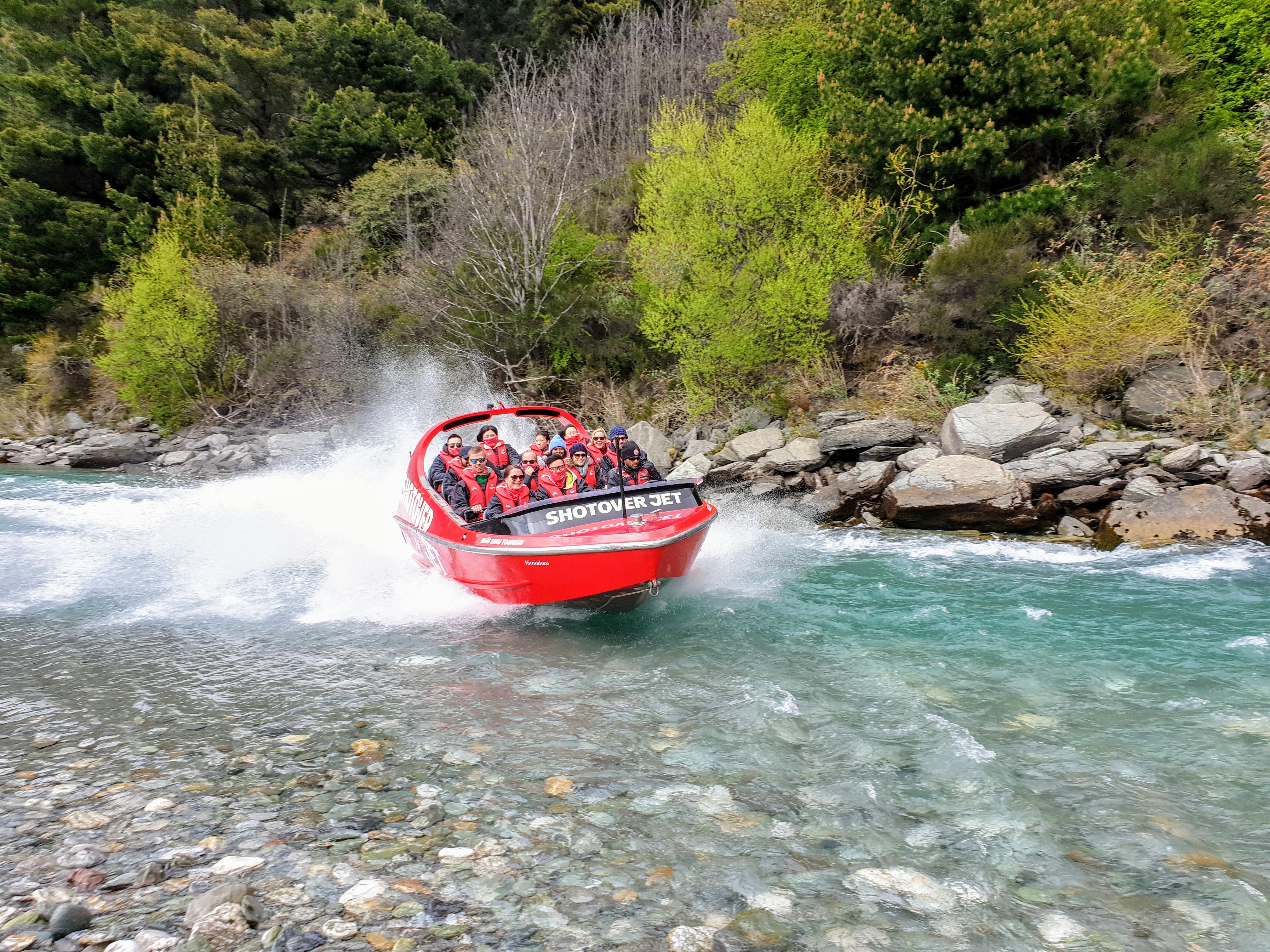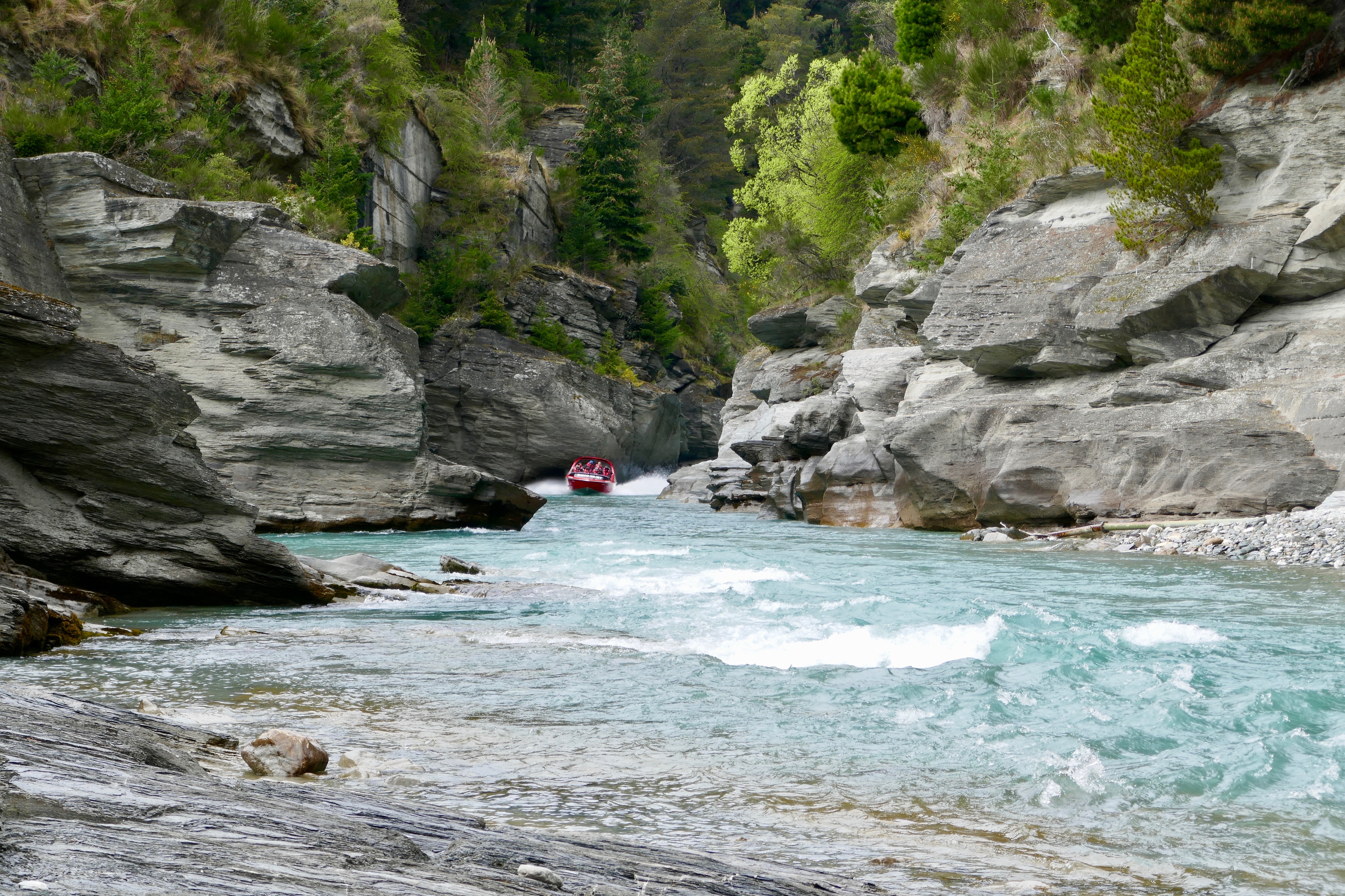 Narrow river with sharp rocks around on those speeds in a jet boat: SCARY! But looks amazing and I love speed so I'd be willing to go on it. And wow how beautiful the water looks, incredibly clear!