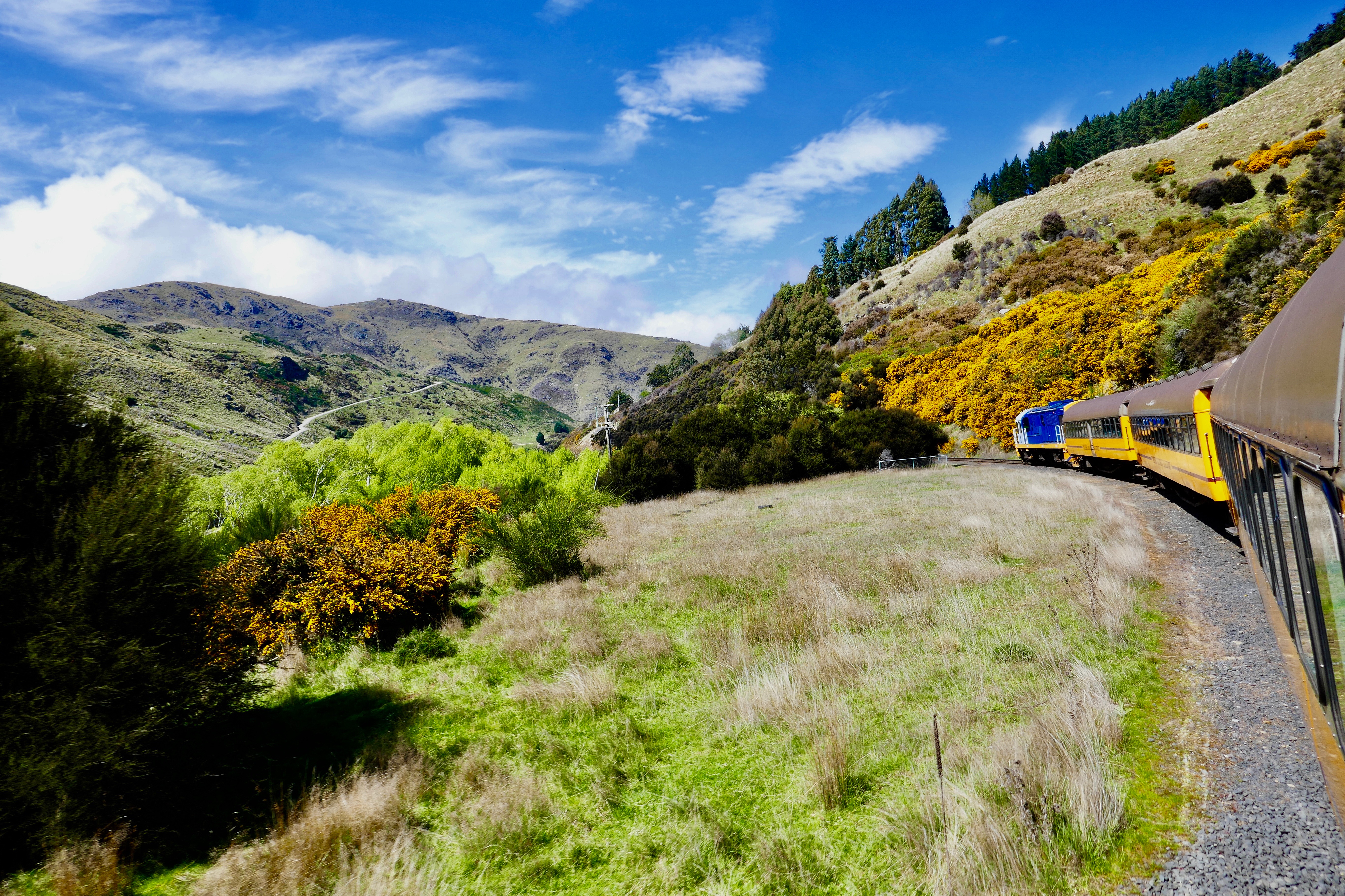 As the train rolled through rich green farmland the clouds thinned and as we started the climb up into the Taieri Gorge there was more blue sky than clouds. Winning! It was cold still of course, but it looked like we were in for a beautiful day.