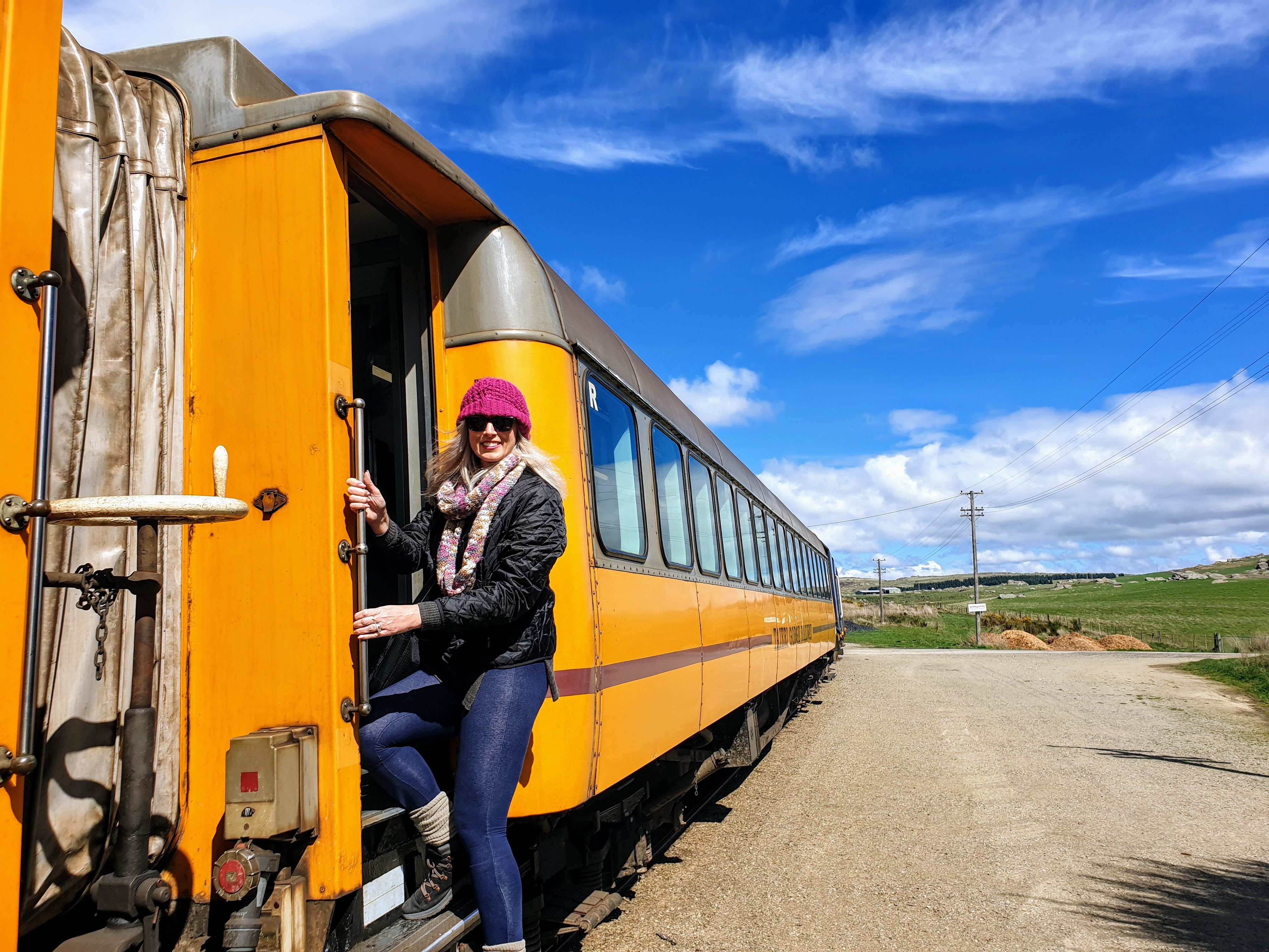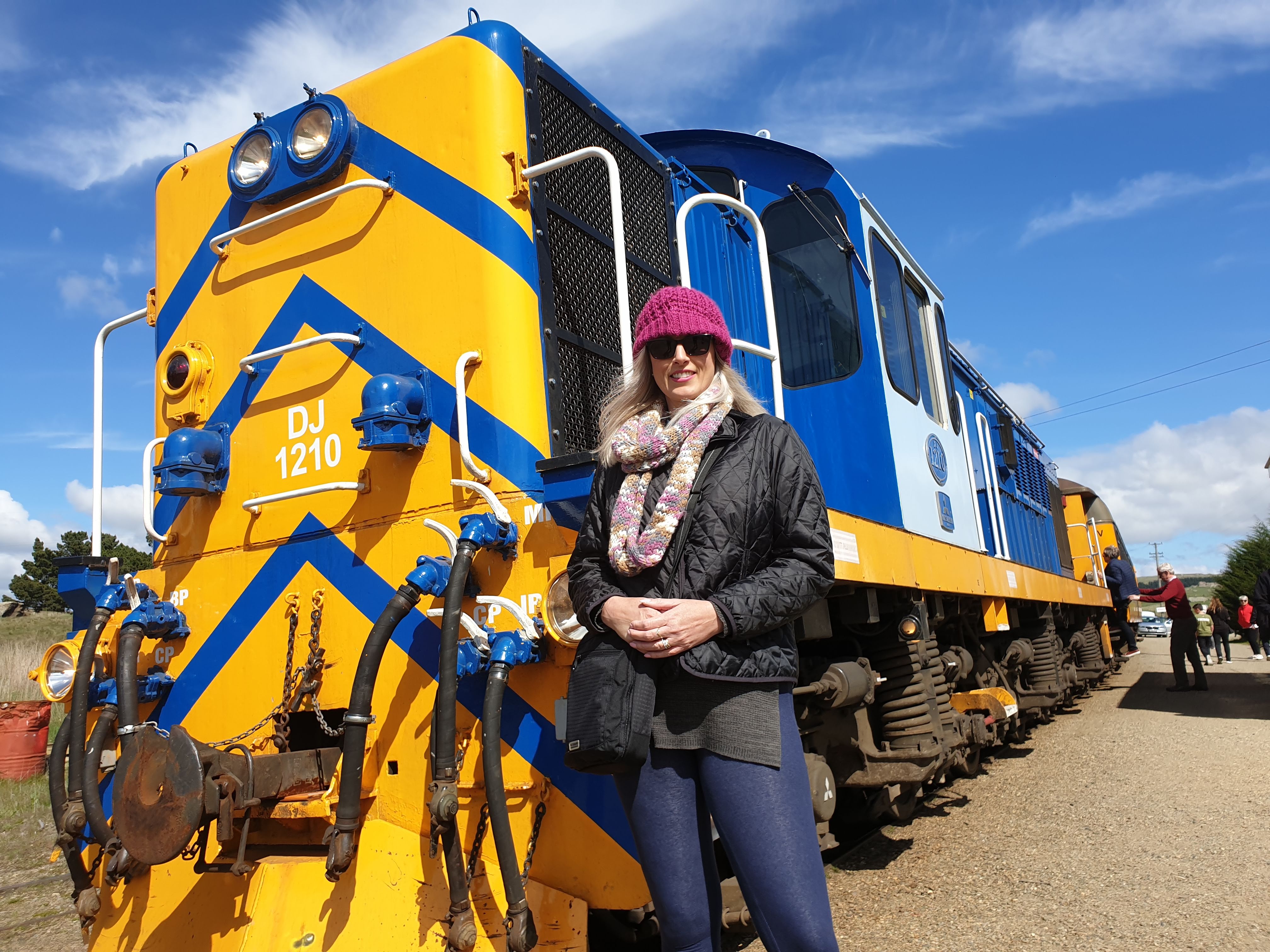 You can see her here at Pukerangi posing with the locomotive and also re-boarding - She's equipped with that bloody beanie that has featured in every picture I've taken of her here in New Zealand. Ok, so not every picture, but most. It's cold I guess, legit reason for the beanie.