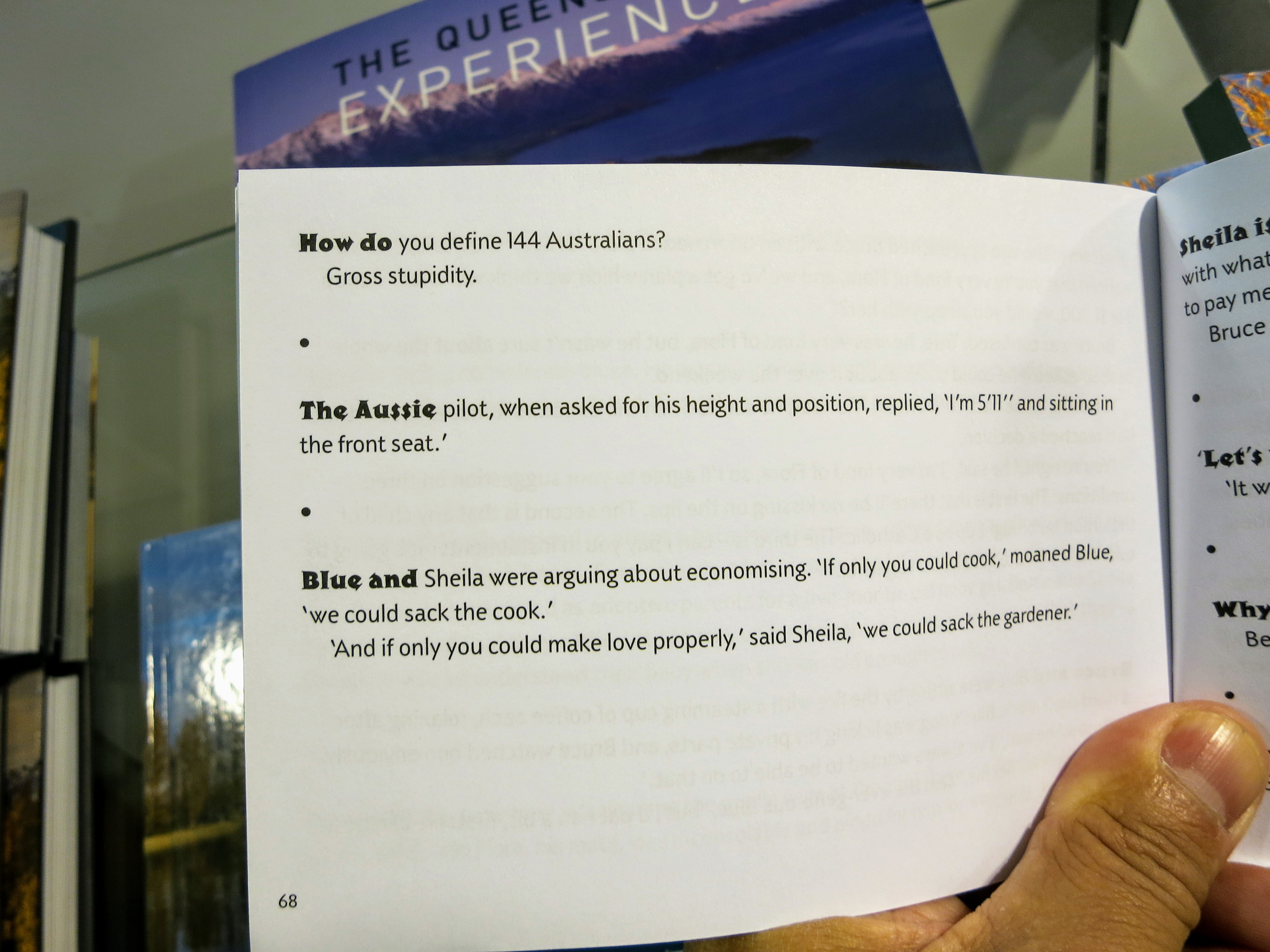 So, this post was prompted by a book I ran into at the gift store at the Skyline Queenstown. It's a book full of jokes about Aussie's however the jokes generally could be applied to any nationality. There's some funny ones in there too. If I changed the nationality connotation on each joke they'd apply to a New Zealander also...But, you know what? I'm in a good mood so I'll let them have this round.