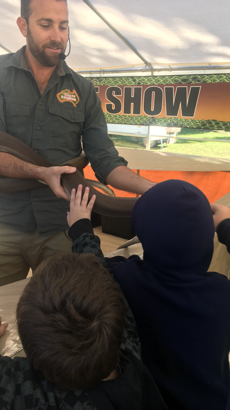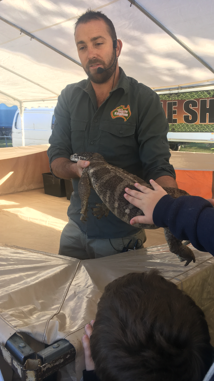 After we had all voted the kids were ready for the reptile show. They were not disappointed, they all had a turn touching a snakes and a goanna. They listened to the show and they learnt how to treat a snake bite and what to do if they saw a snake in the wild.