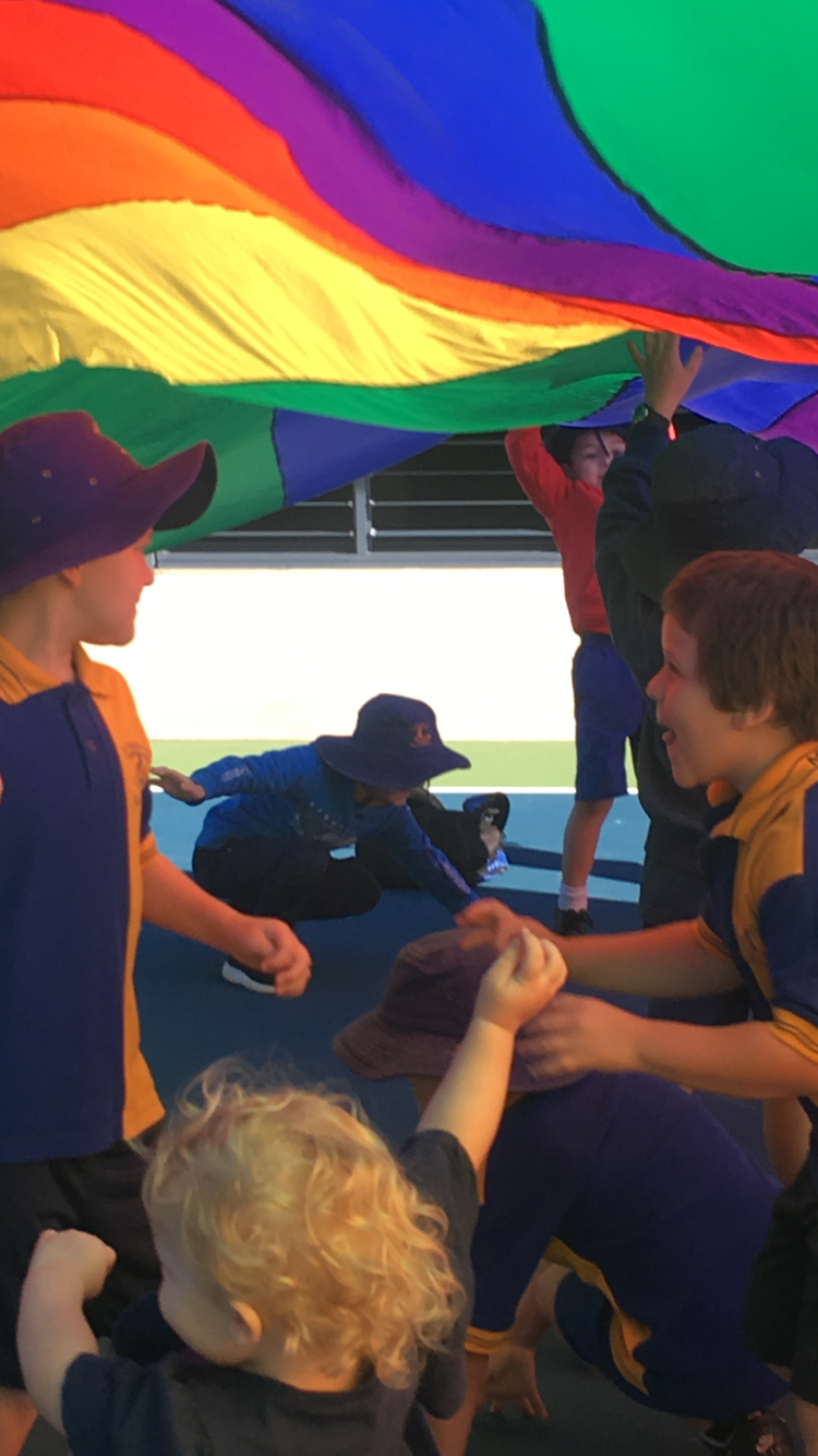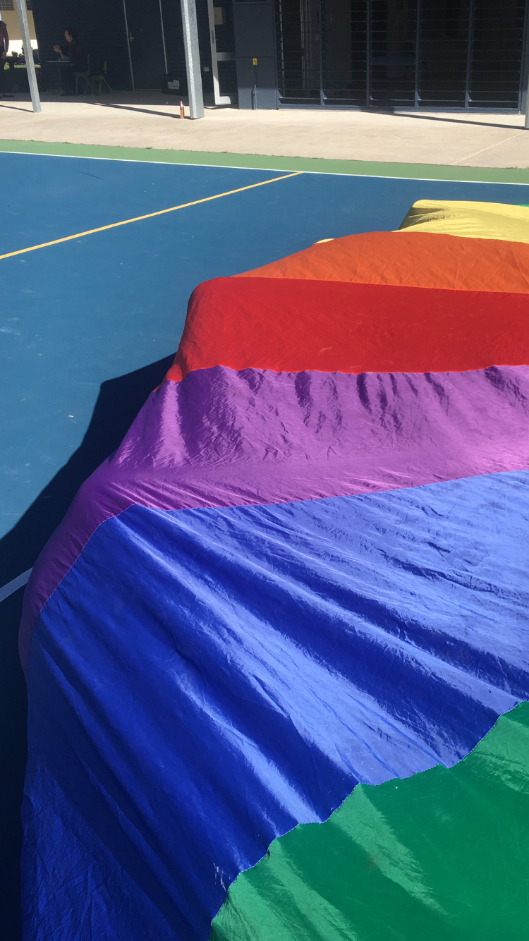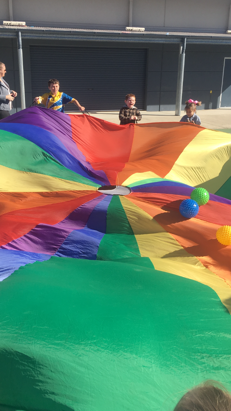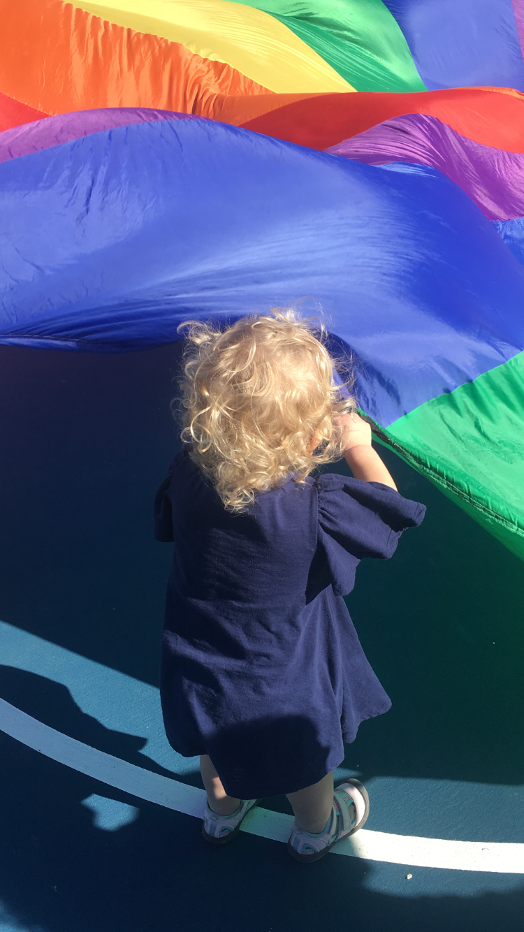 After they had all finished with that activity, I guided them over to the giant parachute. I figured all of them would enjoy this as it meant no one had to get dirty, Miss 1 was extremely happy with that.