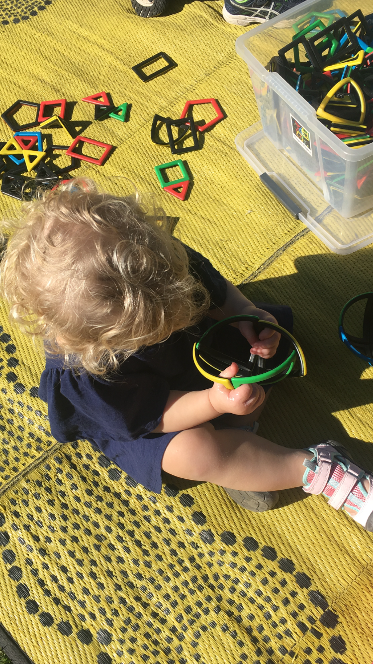 She looked absolutely adorable. Miss 1 found another activity to play, clicking together magnetic shapes that the local kindergarten had brought over for the children to use. Something tells me she is going to love it when she starts kindy in a couple of years.