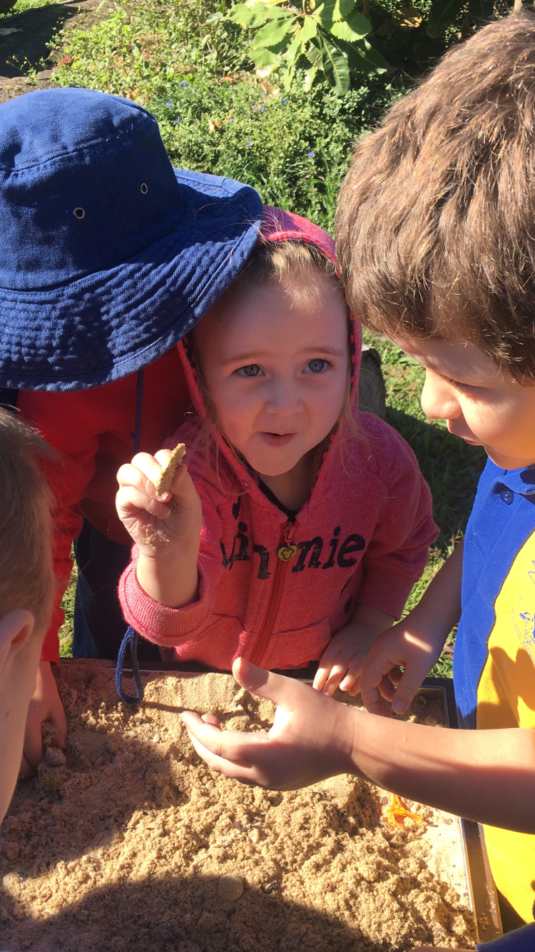 So I finished up yesterday’s post just after we had morning tea. The kids were ready for more fun and there were plenty of activities to choose from. Master 7 disappeared to play with his friends for a little while so I took the other kids to check out the sand treasures!