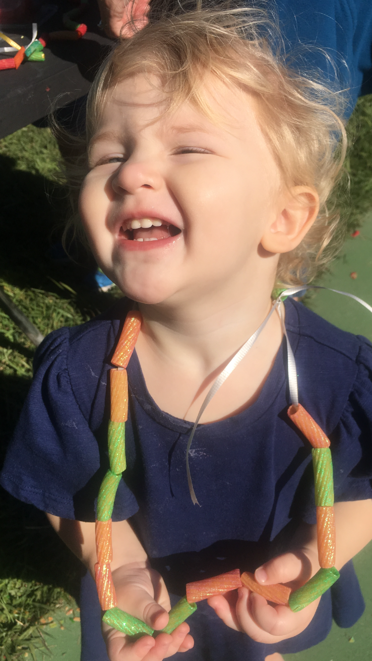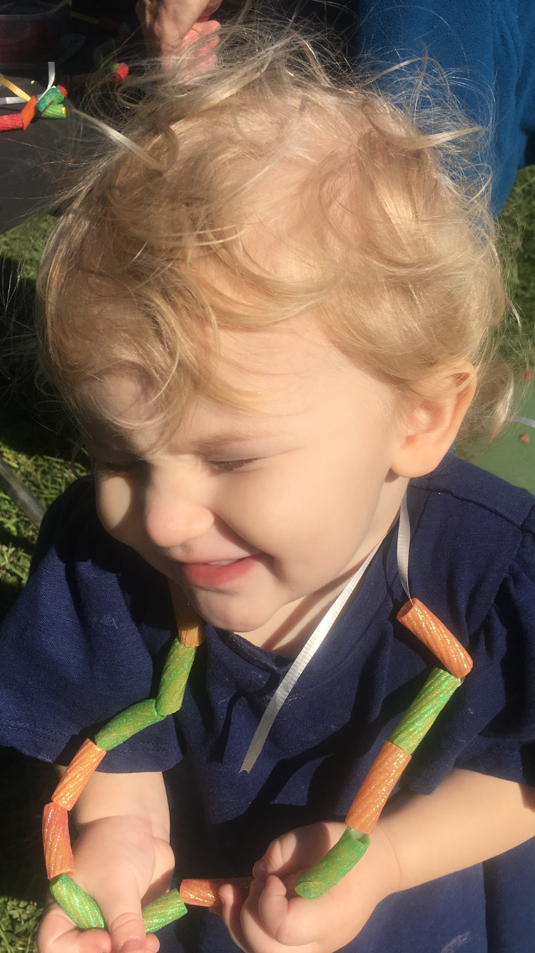 Miss 3 decided that she needed to get her face painted, the que was very long and as such Miss 1 got board, so while Miss 3 was waiting patiently for her turn I took Miss 1 over to make herself a pasta necklace.