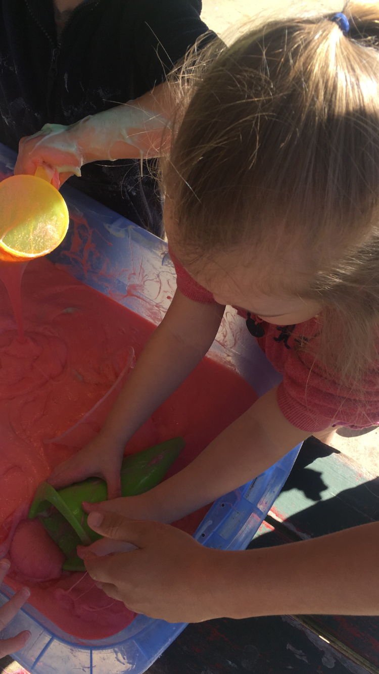 First up was the slime buckets. While we have made slime at home I must say we have never made as much as they had on offer today. Miss 3 and Master 7 were straight into it. They had little toys to pour it into however my munchkins were just as happy feeling it squish through their fingers.