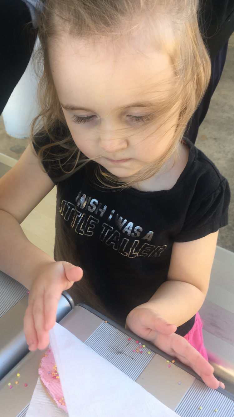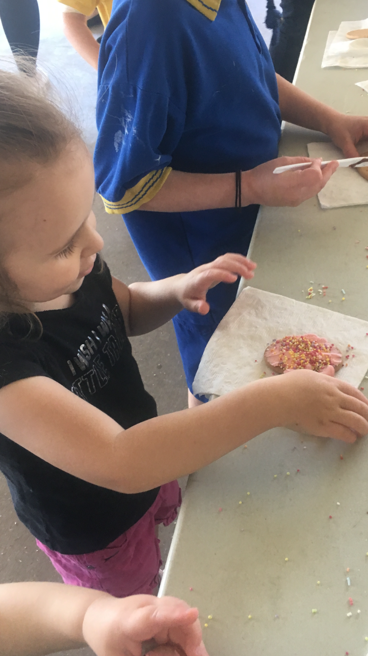 Master 5 ran of after that to go and see the fire truck, the girls however had seen something they found a little more interesting. The cookie zone was calling them! Here he children each got a biscuit and they were able to ice and decorate their very own cookie to have for morning tea.